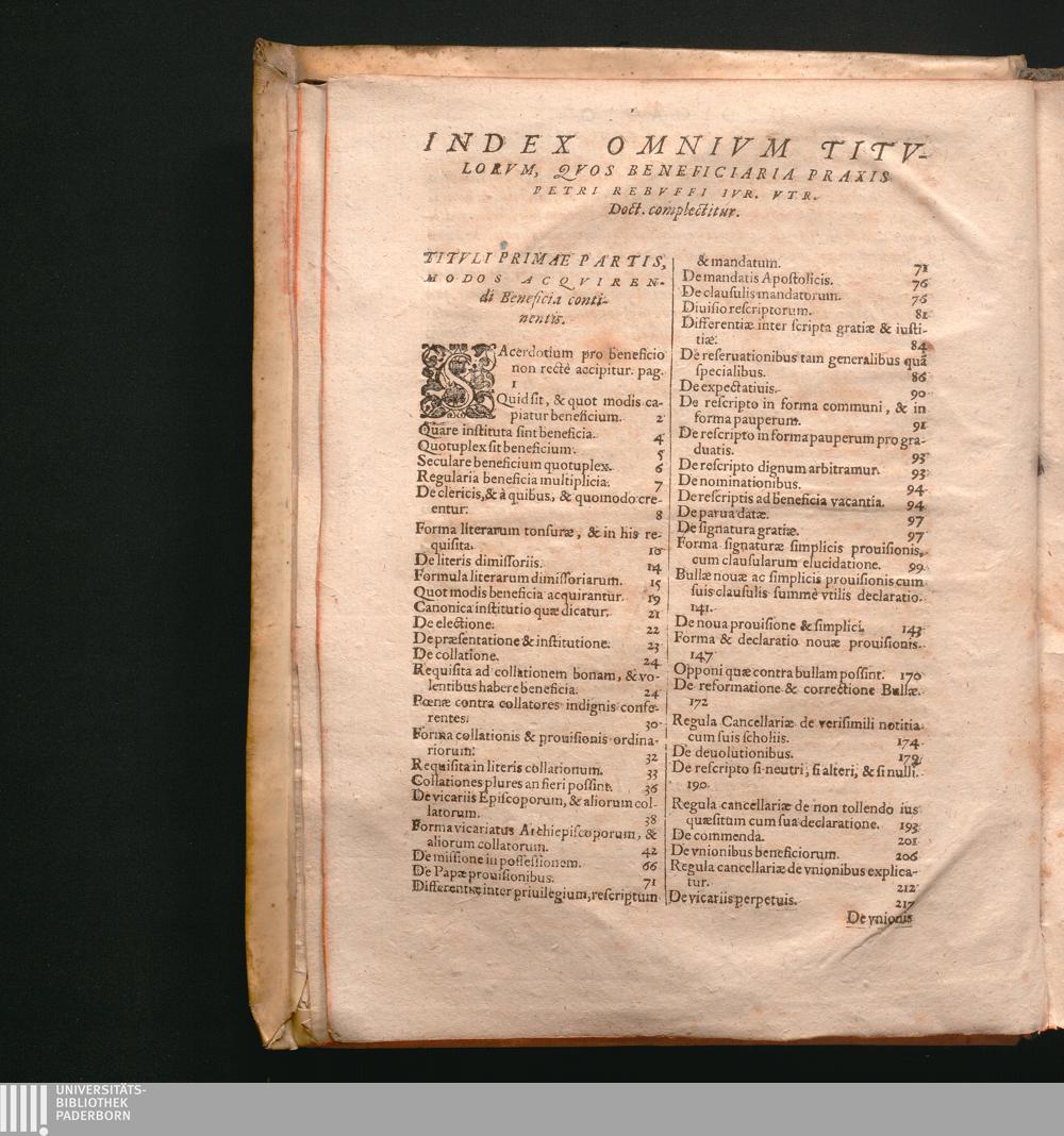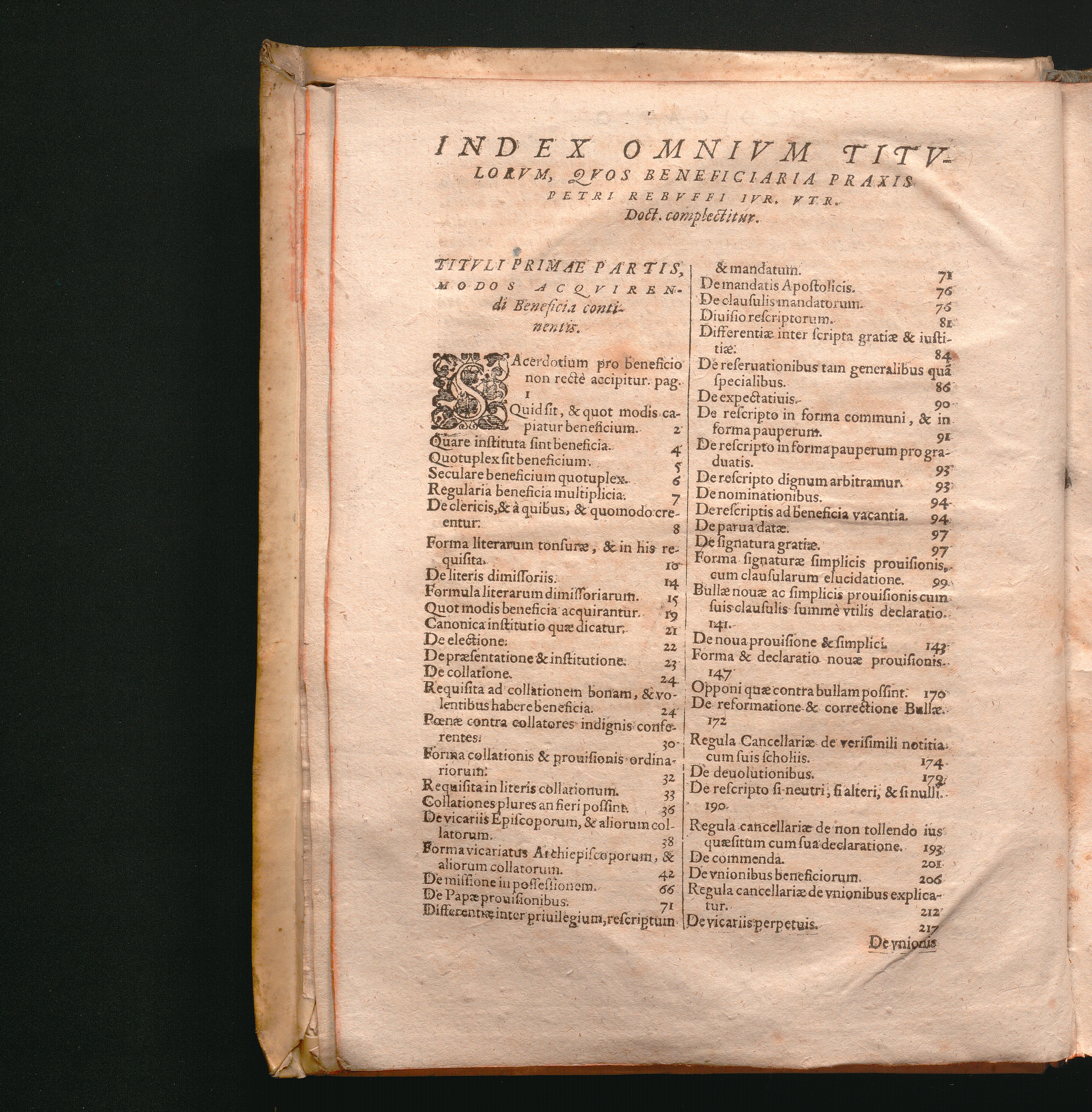 Index Omnivm Titvlorvm, Qvos Beneficiaria Praxis Petri Rebvffi Ivr. Vtr. Doct. c[...]