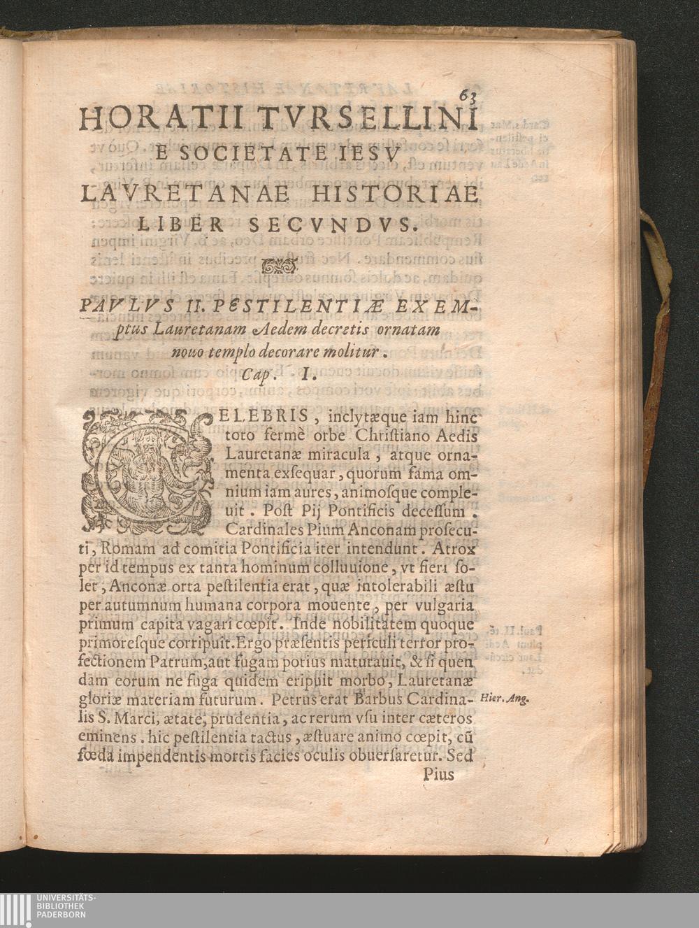 HORATII TVRSELLINI || ROMANI || E SOCIETATE IESV || LAVRETANAE HISTORIAE || LIBRI QVINQVE. || : AD ILLVSTRISS. D. || PETRVM ALDOBRANDINVM || S. R. E. CARD