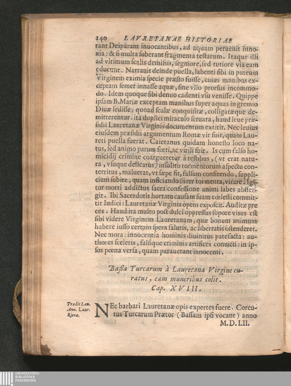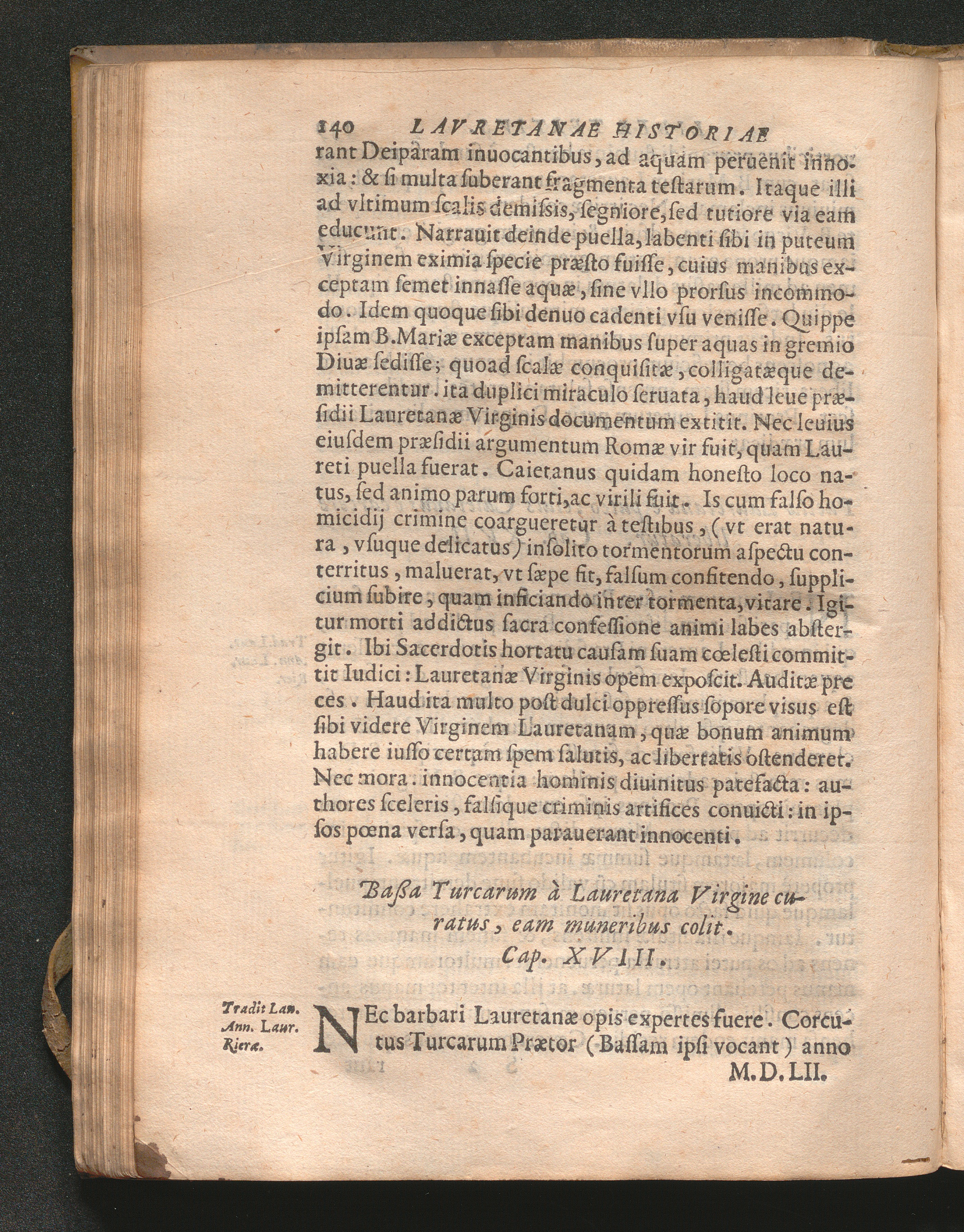 Cap. 18. Bassa Turcarum à Lauretana Virg. sa natus eam donis colit.