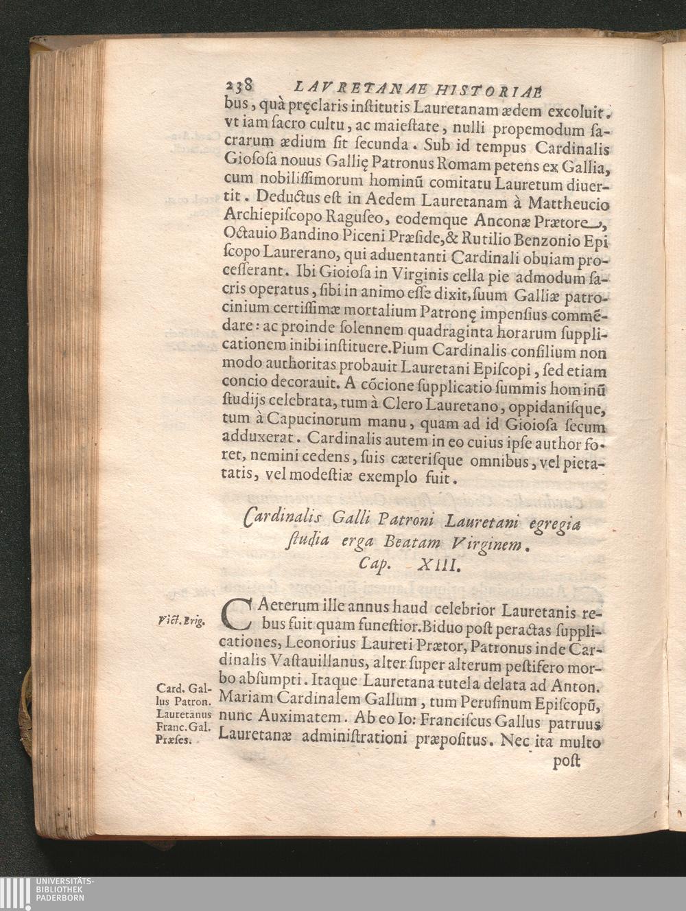 Cap. 13. Card. Galli egregia studia erga B Virg.