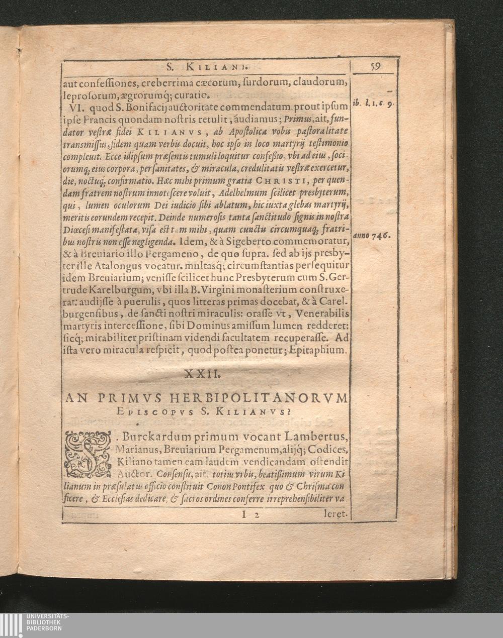S. Kiliani Franciae Orientalis, Qvæ Et Franconia Dicitvr; Apostoli, Gesta, Varijs cum notationibus historicis, dogmaticis / Qvas, Ad Reverendvm Admodvm & CL. Virum, Dominum Iohannem Wilhelmvm Gantzhornivm Franconem, Noui Herbipoli Monasterij Decanum, inclytæque ibidem Academiæ Procancellarium, & Exrectorem, Scribebat Nicolavs Serarivs, Societatis Iesv Sacerdos