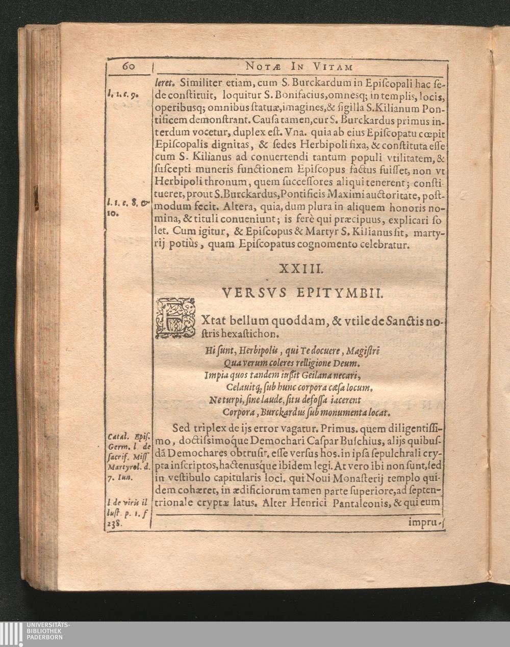 S. Kiliani Franciae Orientalis, Qvæ Et Franconia Dicitvr; Apostoli, Gesta, Varijs cum notationibus historicis, dogmaticis / Qvas, Ad Reverendvm Admodvm & CL. Virum, Dominum Iohannem Wilhelmvm Gantzhornivm Franconem, Noui Herbipoli Monasterij Decanum, inclytæque ibidem Academiæ Procancellarium, & Exrectorem, Scribebat Nicolavs Serarivs, Societatis Iesv Sacerdos