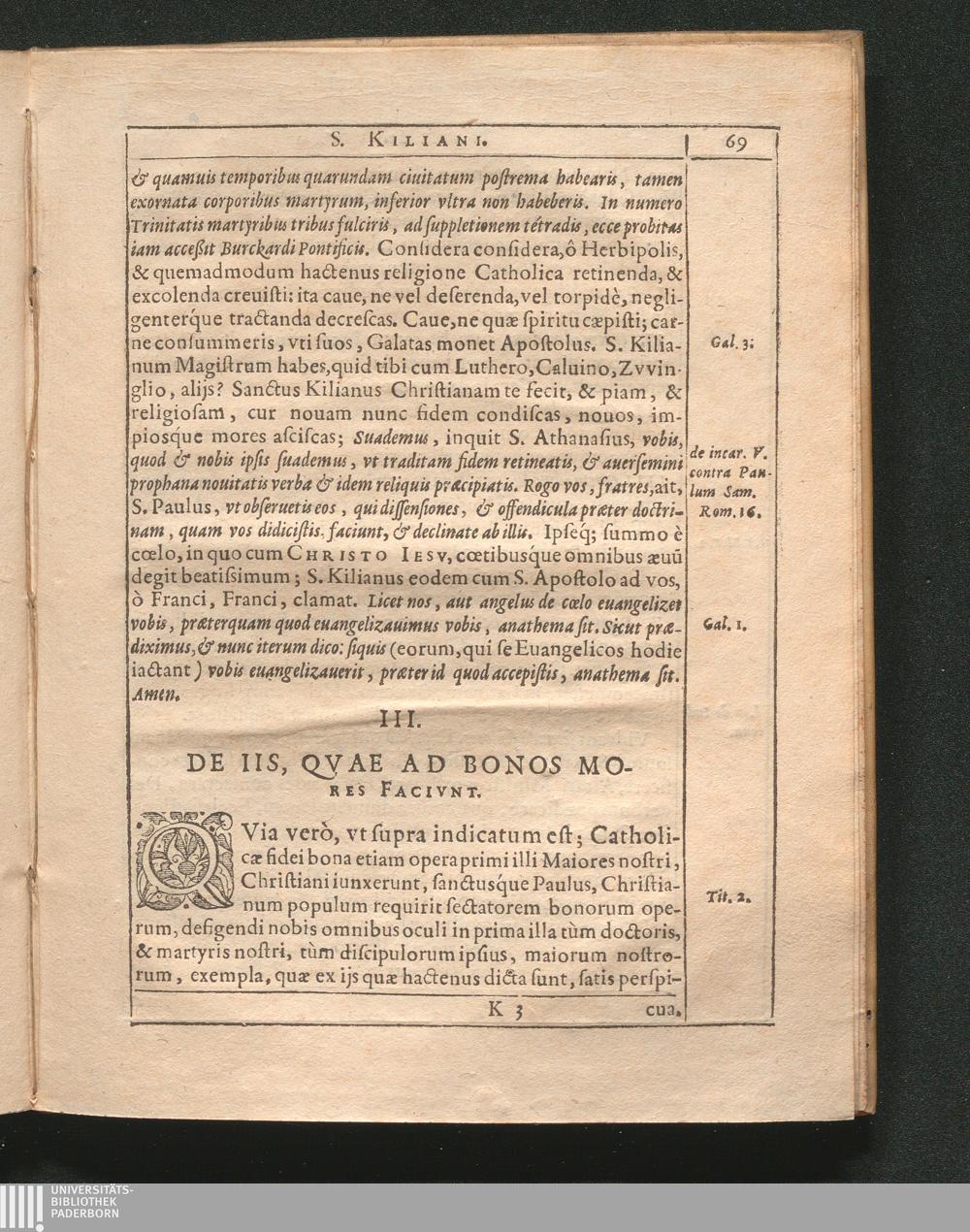 S. Kiliani Franciae Orientalis, Qvæ Et Franconia Dicitvr; Apostoli, Gesta, Varijs cum notationibus historicis, dogmaticis / Qvas, Ad Reverendvm Admodvm & CL. Virum, Dominum Iohannem Wilhelmvm Gantzhornivm Franconem, Noui Herbipoli Monasterij Decanum, inclytæque ibidem Academiæ Procancellarium, & Exrectorem, Scribebat Nicolavs Serarivs, Societatis Iesv Sacerdos