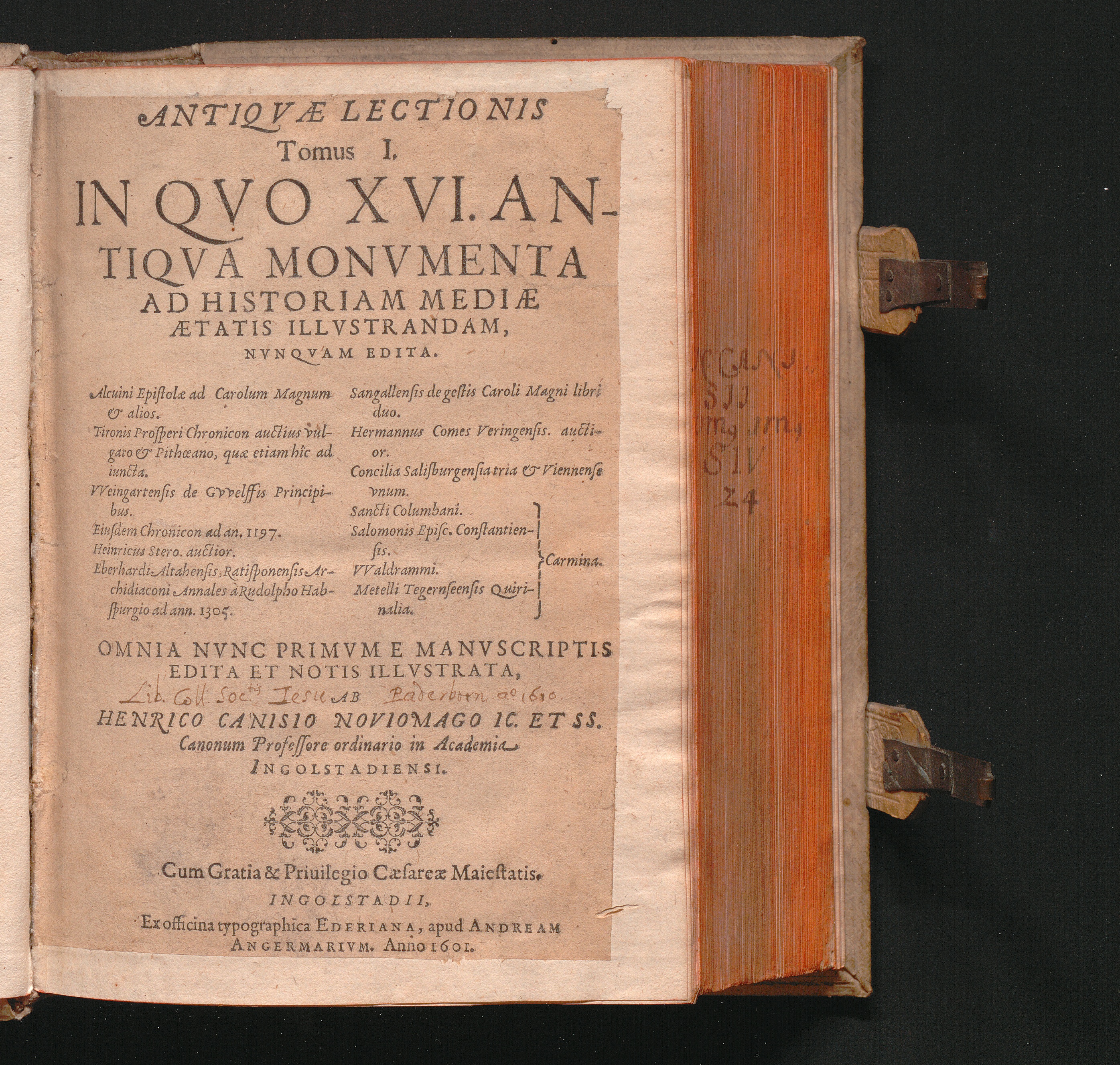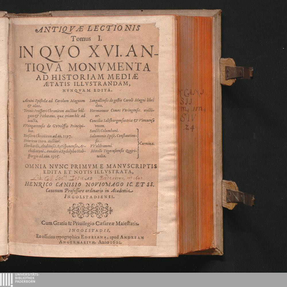Tomus I. (1601) In Qvo XVI. Antiqva Monvmenta Ad Historiam Mediae Aetatis Illvstrandam, Nvnqvam Edita