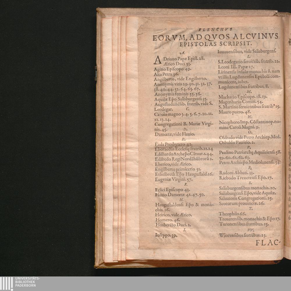 Elenchvs Eorum, Ad Qvos Alcvinvs Epistolas Scripsit.