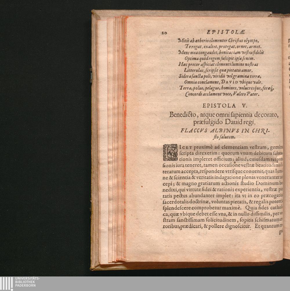 Epistola V. Benedicto, atque omni sapientia decorato, præfulgido Dauid regi. Flaccvs[...]