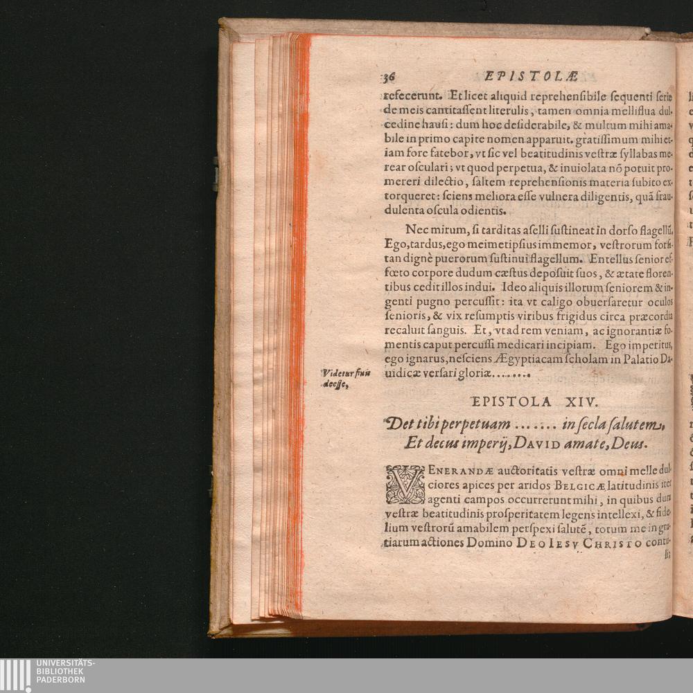 Epistola XIV. Det tibi perpetuam ....... in secla salutem, Et decus imperij, David[...]