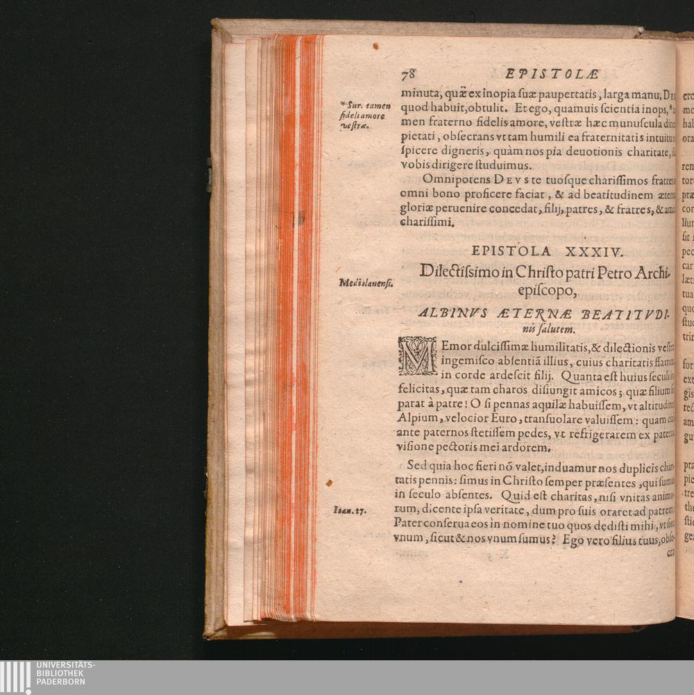 Epistola XXXIV. Dilectissimo in Christo patri Petro Archiepiscopo, Albinvs Æternæ[...]