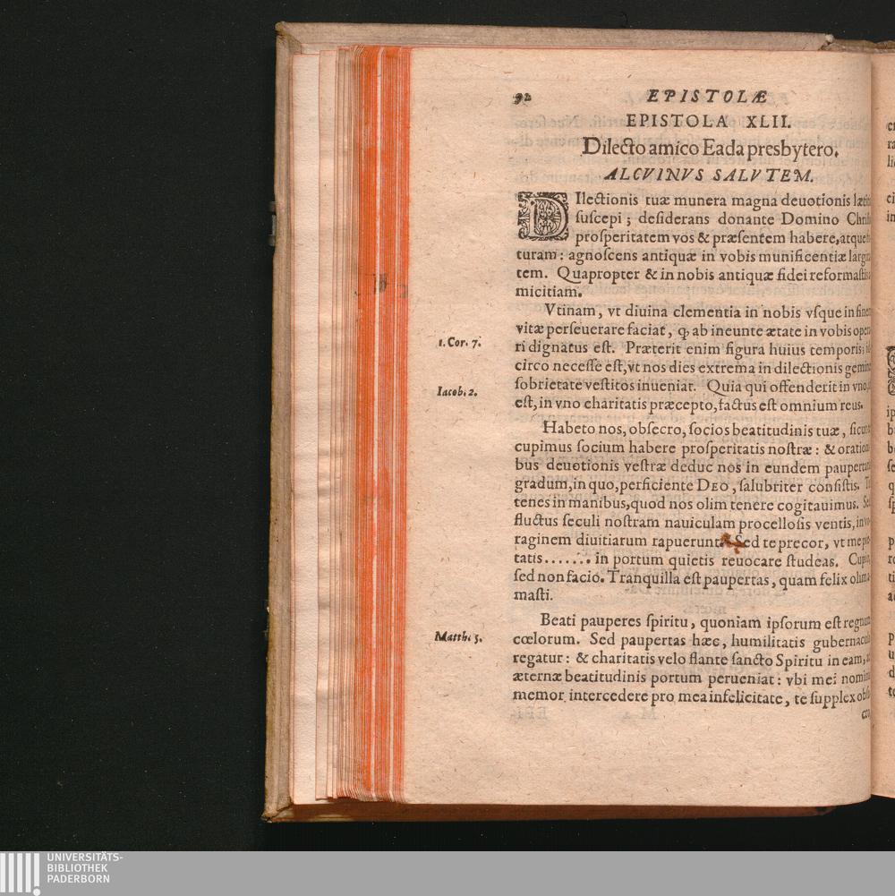 Epistola XLII. Dilecto amico Eada presbytero. Alcvinvs Salvtem.