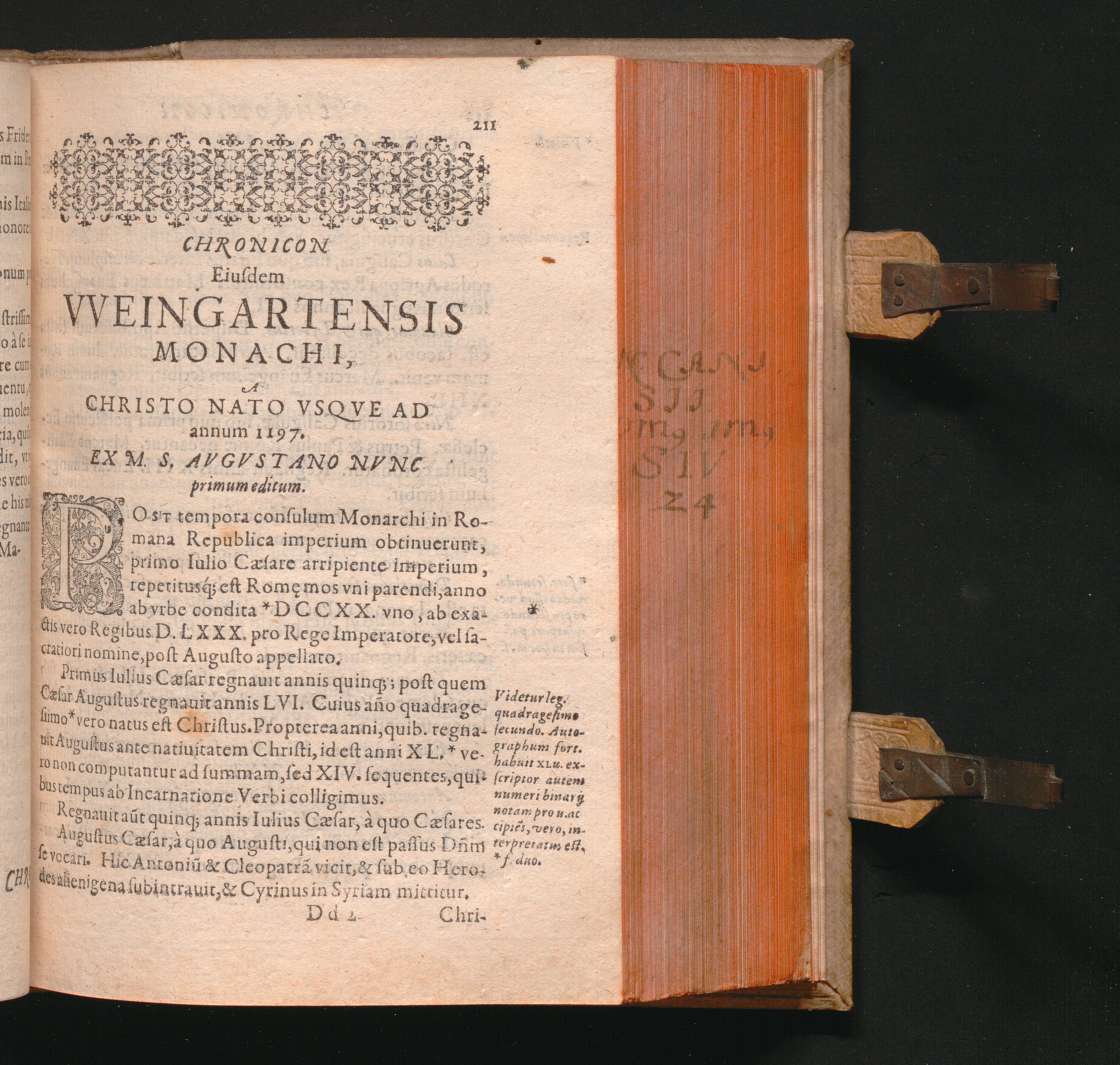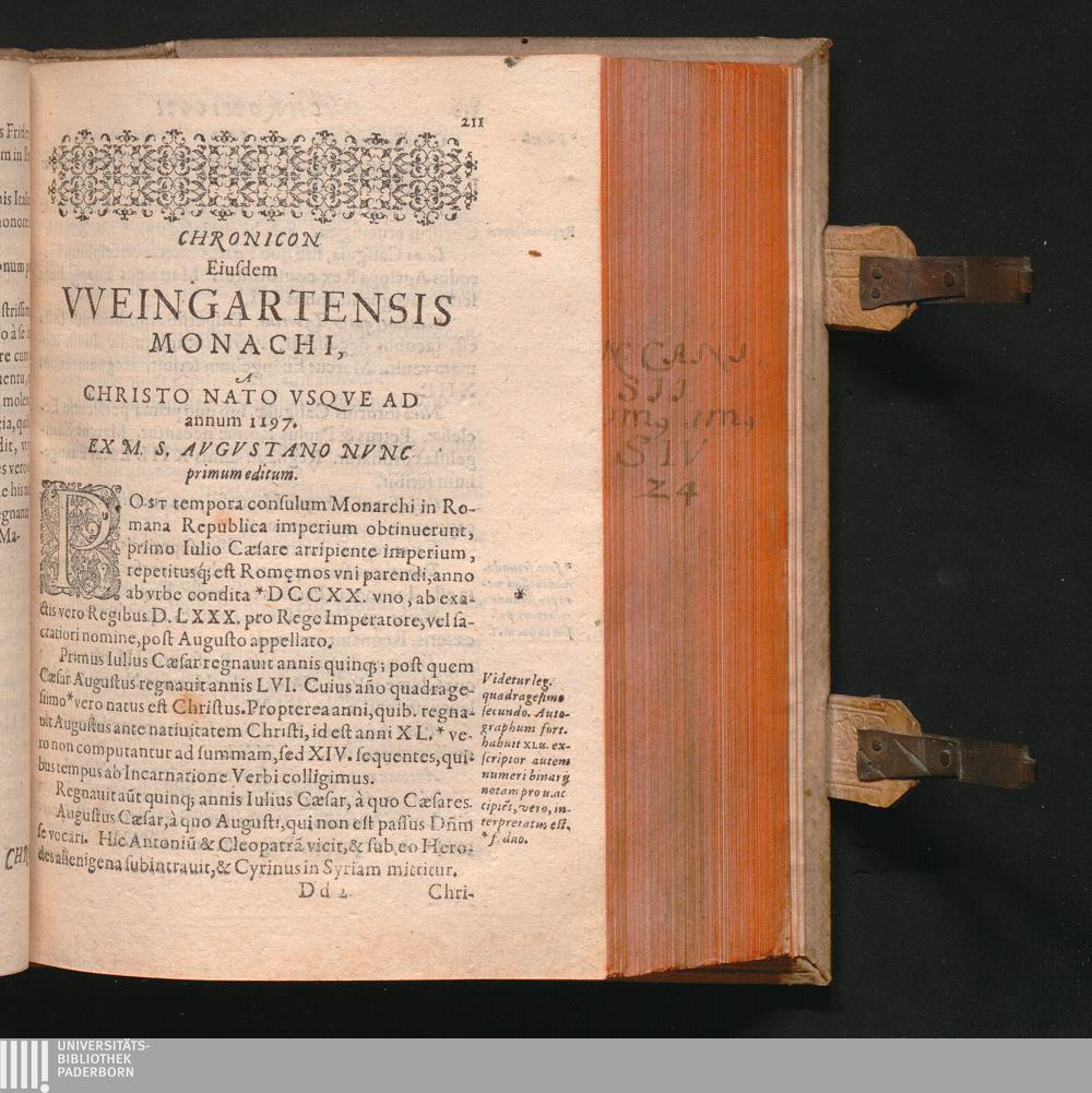 Chronicon Eiusdem VVeingartensis Monachi, A Christo Nato Vsqve Ad annum 1197. Ex[...]