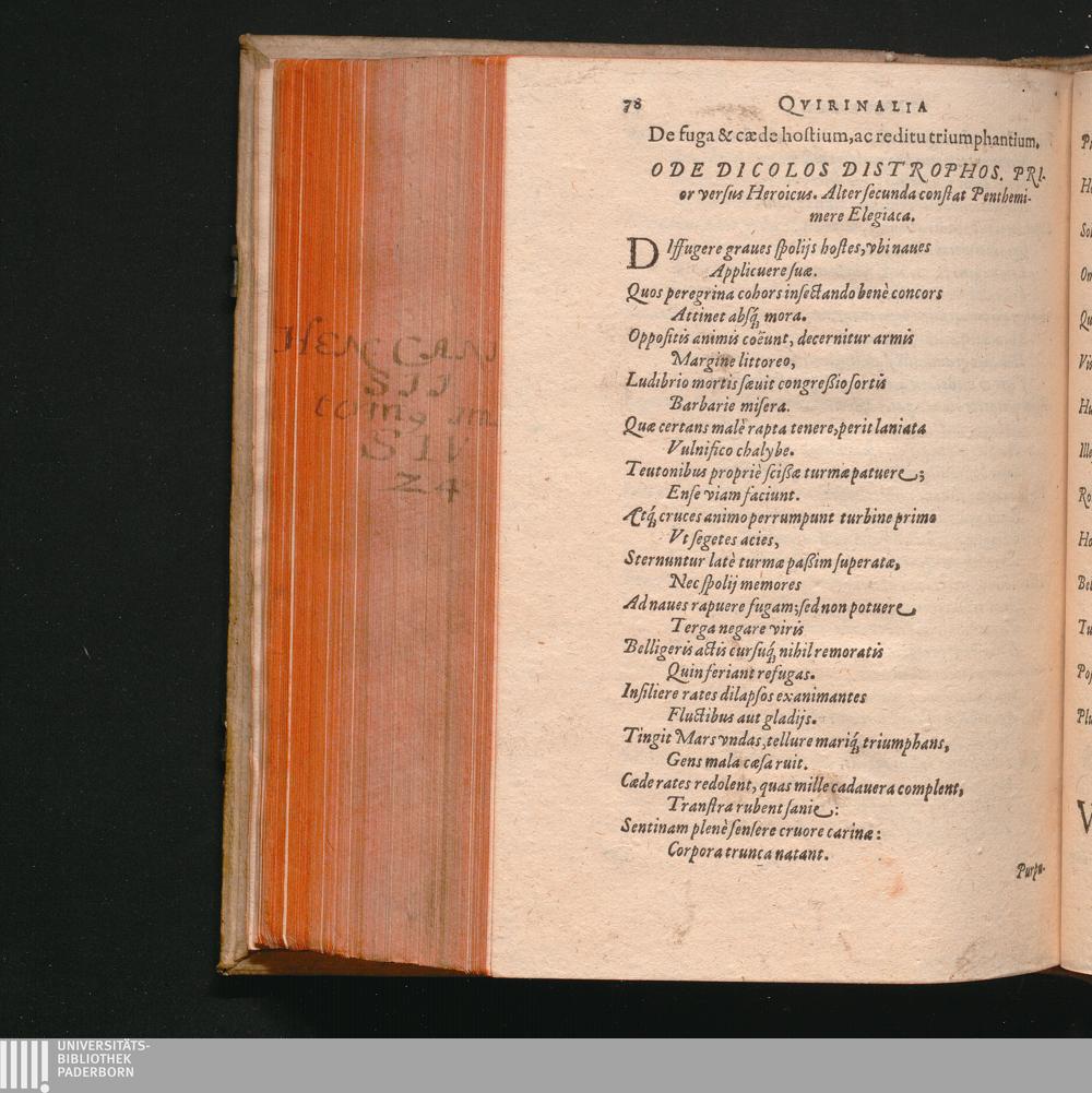 De fuga & cæde hostium, ac reditu triumphantium. Ode Dicolos Distrophos. Prior versus[...]