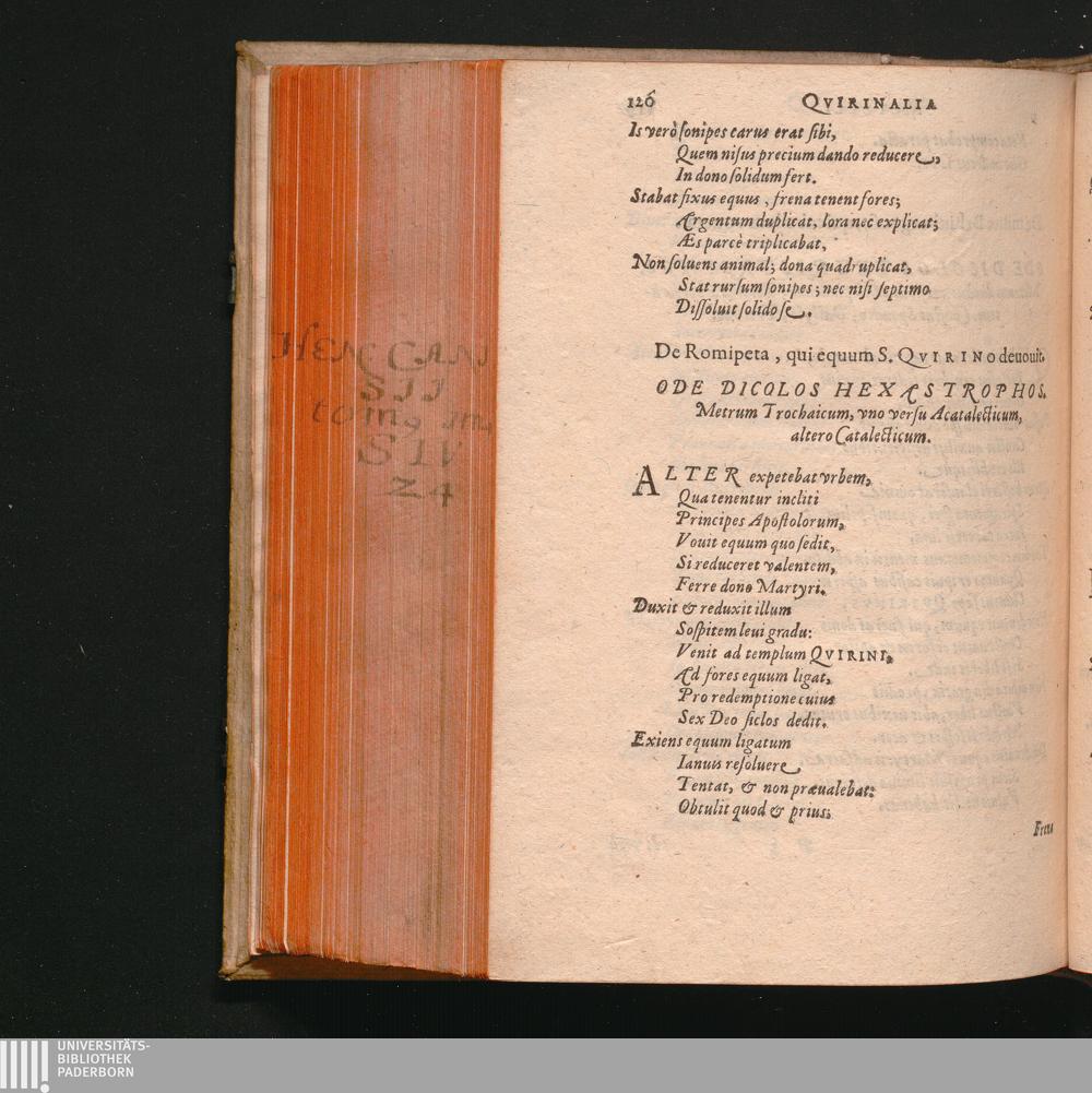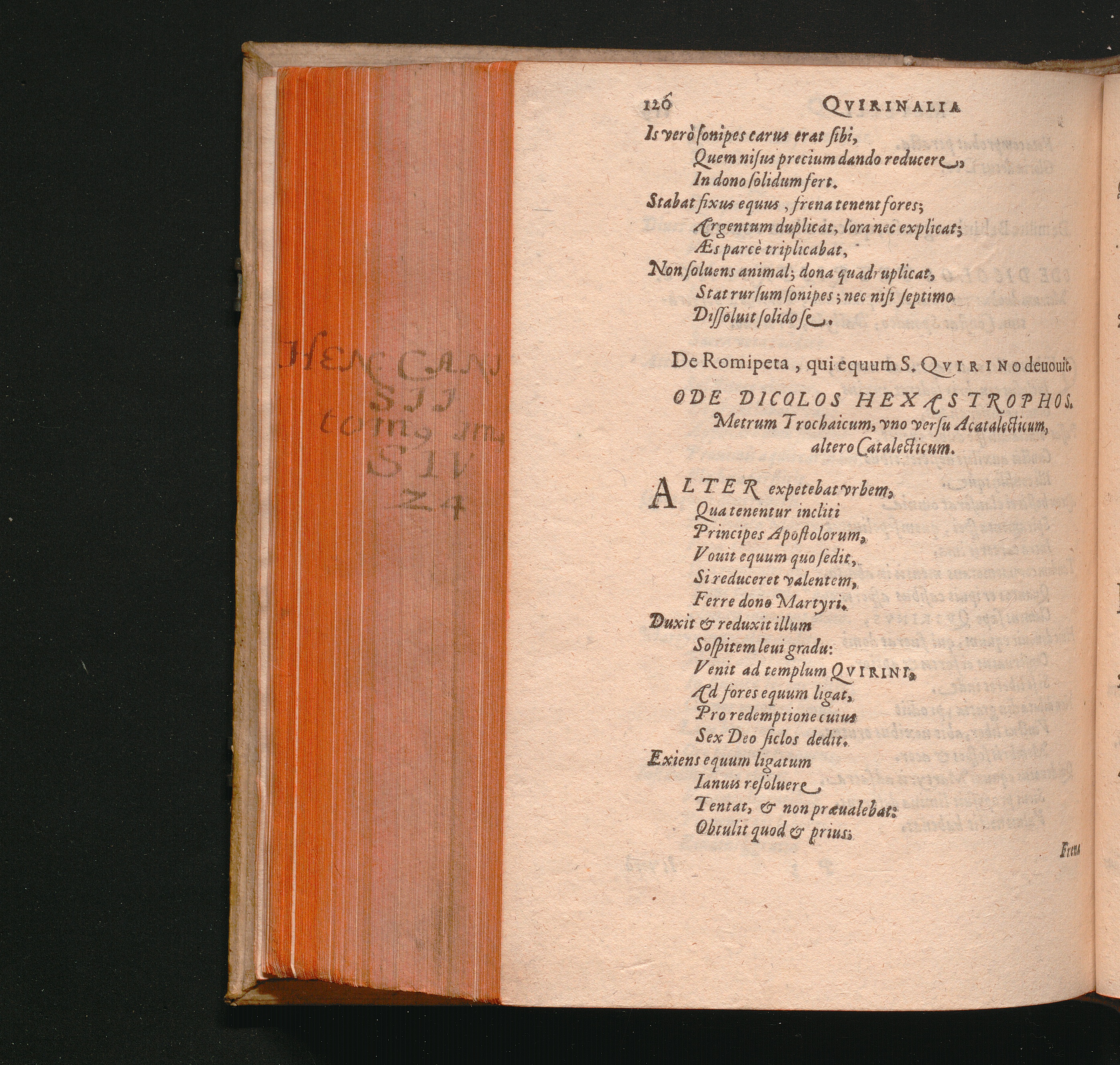 De Romipeta, qui equum S. Qvirino deuouit. Ode Dicolos Hexastrophos. Metrum Trochaicum,[...]