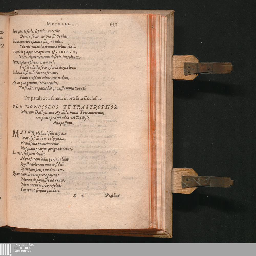 De paralytica sanata in præfata Ecclesia. Ode Monocolos Tetrastrophos. Metrum Dactylicum[...]