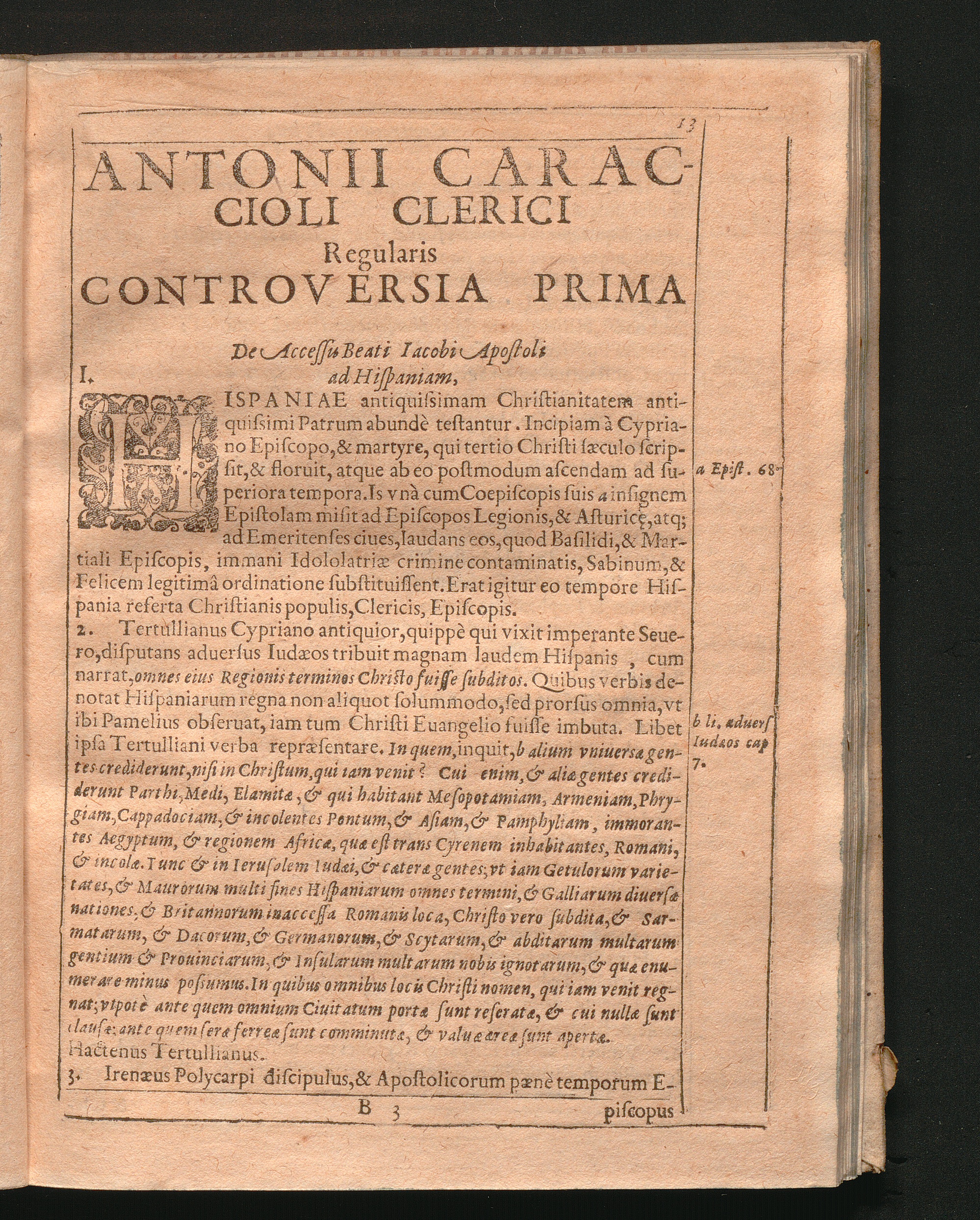 Antonii Caracciolo Clerici Regularis Controversia Prima