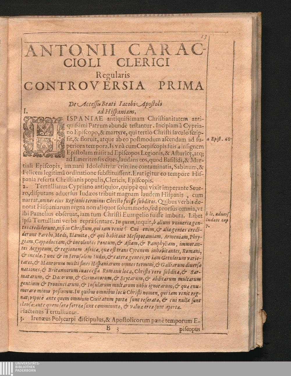 Illvstrivm Controversiarvm Biga. / Auctore Antonio Caracciolo Ordinis Clericorum Regularium Presbytero
