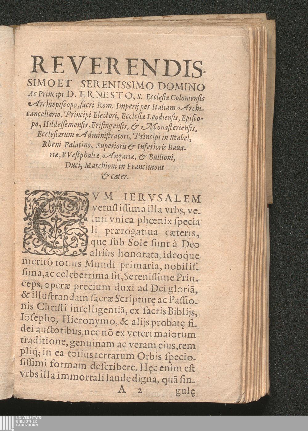 VRBIS|| HIEROSOLIMÆ|| QVEMADMODVM EA CHRISTI|| tempore floruit, & suburbanorum eius breuis.|| descriptio.|| : DE LOCIS ITEM QVAE IESV|| CHRISTI ET SANCTORVM PASSIONE AC|| gestis nobilitata sunt, aliarumque insigniorum historia-||rum breuis Commentarius. Omnibus Christianis|| lectu vtilis, sacræ verò Scripturæ interpretibus|| necessarius.|| ADIVNCTA EST TOPOGRAPHICA DE-||lineatio ad viuum æneis formis expressa, cui|| numeri toto libro notati exactè|| respondent|| / CHRISTIANO ADRICHOMIO DELPHO AVctORE||