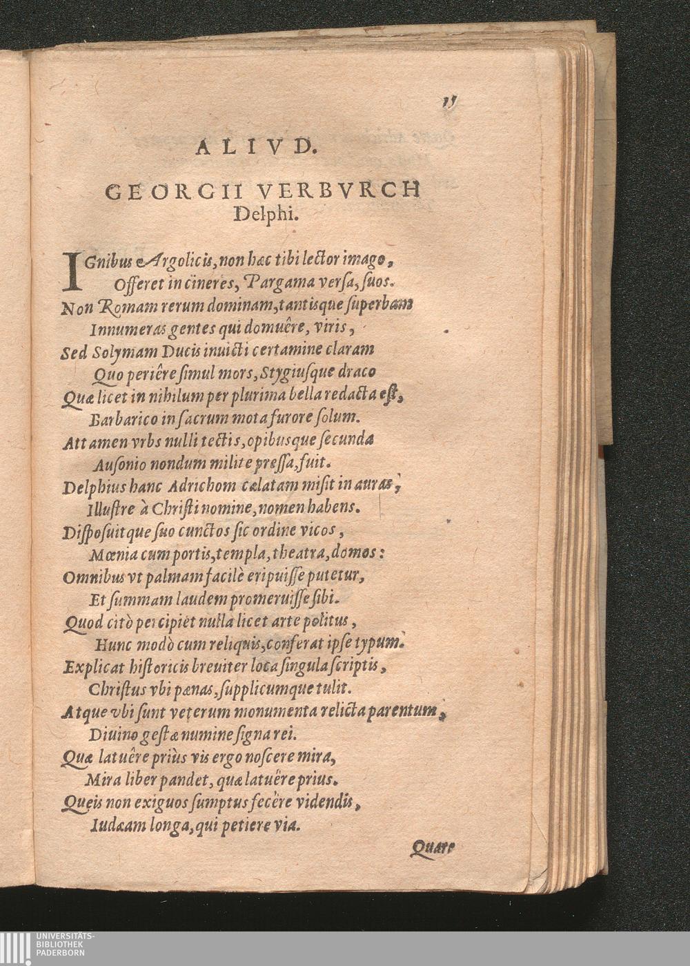VRBIS|| HIEROSOLIMÆ|| QVEMADMODVM EA CHRISTI|| tempore floruit, & suburbanorum eius breuis.|| descriptio.|| : DE LOCIS ITEM QVAE IESV|| CHRISTI ET SANCTORVM PASSIONE AC|| gestis nobilitata sunt, aliarumque insigniorum historia-||rum breuis Commentarius. Omnibus Christianis|| lectu vtilis, sacræ verò Scripturæ interpretibus|| necessarius.|| ADIVNCTA EST TOPOGRAPHICA DE-||lineatio ad viuum æneis formis expressa, cui|| numeri toto libro notati exactè|| respondent|| / CHRISTIANO ADRICHOMIO DELPHO AVctORE||