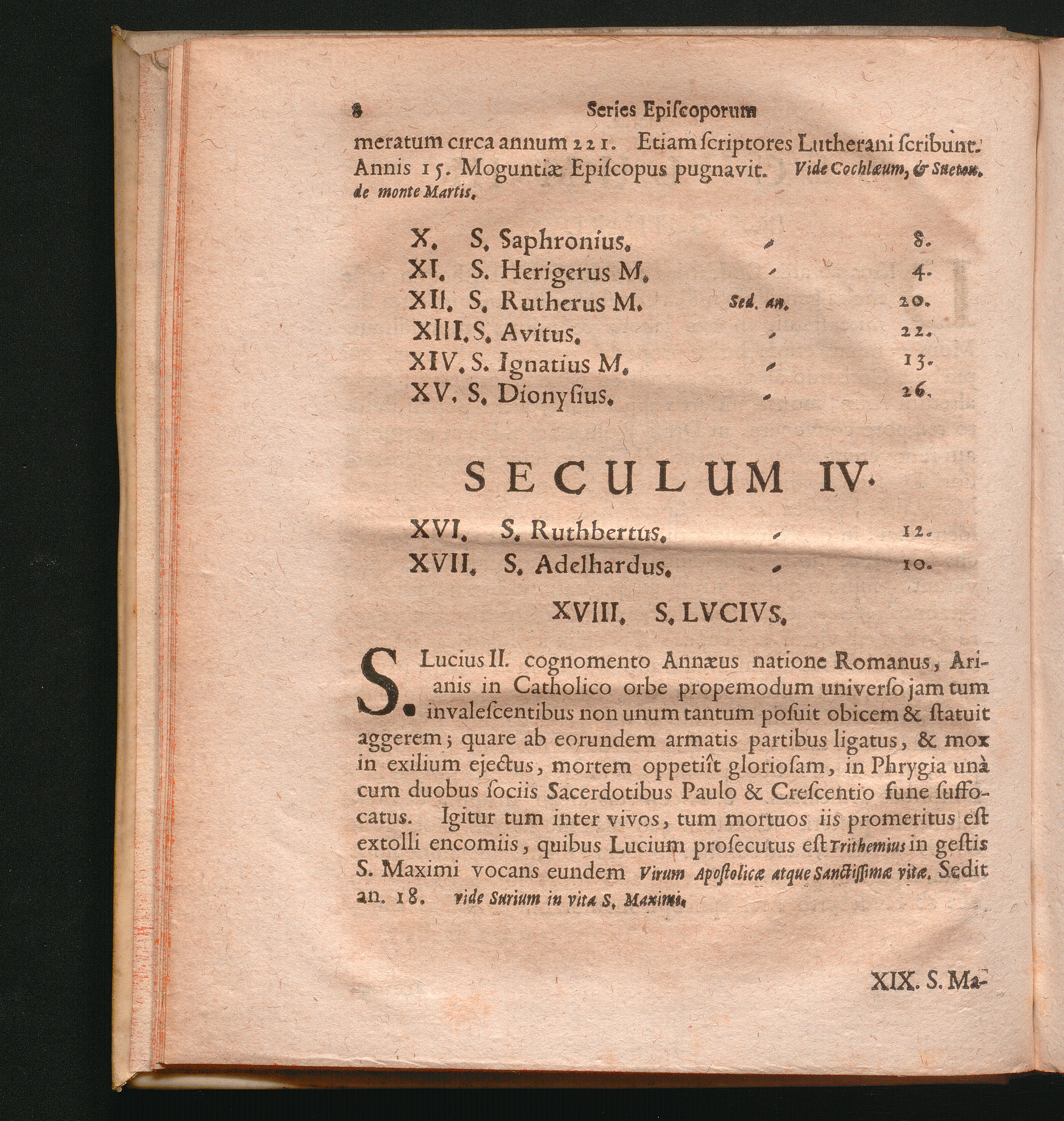 Series Episcoporum Archiepiscoporum Et Electorum Moguntinorum, Trevirensium Et Coloniensium : Unà cum Reflexionibvs Historicis Contra Ioannem Hübnerum & alios Scriptores Heterodoxos &c. Sub Auspicio & Patrocinio ... Domini Domini Casimiri Antonii Liberi Baronis à Sickingen ... / ... In Lucem Edidit MDCCXXV. P. Gregorius Kolb S.J. Historiae quondam Prof. Ordinarius