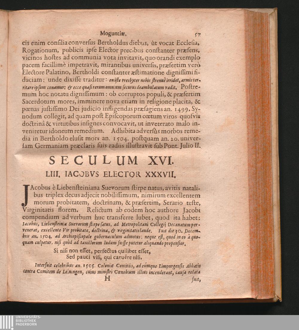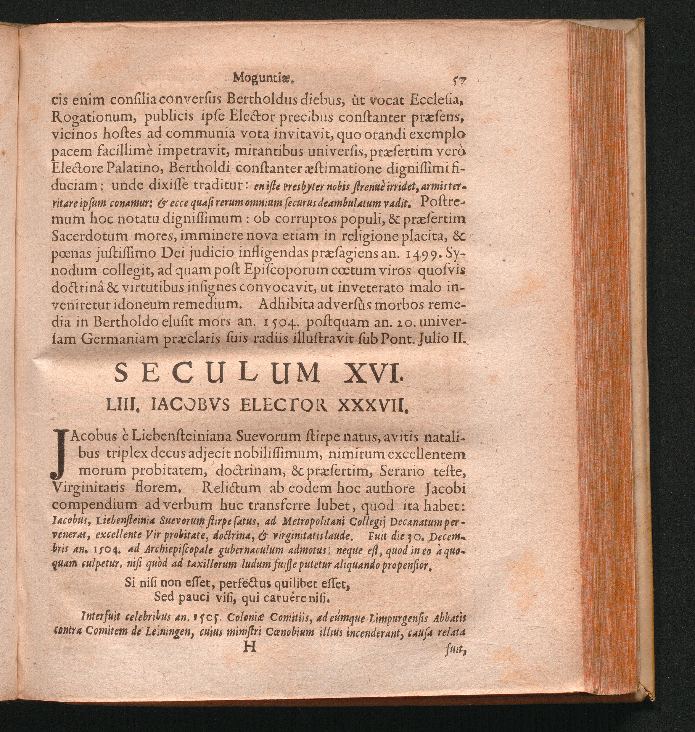 Series Episcoporum Archiepiscoporum Et Electorum Moguntinorum, Trevirensium Et Coloniensium : Unà cum Reflexionibvs Historicis Contra Ioannem Hübnerum & alios Scriptores Heterodoxos &c. Sub Auspicio & Patrocinio ... Domini Domini Casimiri Antonii Liberi Baronis à Sickingen ... / ... In Lucem Edidit MDCCXXV. P. Gregorius Kolb S.J. Historiae quondam Prof. Ordinarius