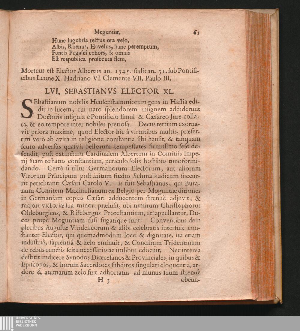 Series Episcoporum Archiepiscoporum Et Electorum Moguntinorum, Trevirensium Et Coloniensium : Unà cum Reflexionibvs Historicis Contra Ioannem Hübnerum & alios Scriptores Heterodoxos &c. Sub Auspicio & Patrocinio ... Domini Domini Casimiri Antonii Liberi Baronis à Sickingen ... / ... In Lucem Edidit MDCCXXV. P. Gregorius Kolb S.J. Historiae quondam Prof. Ordinarius
