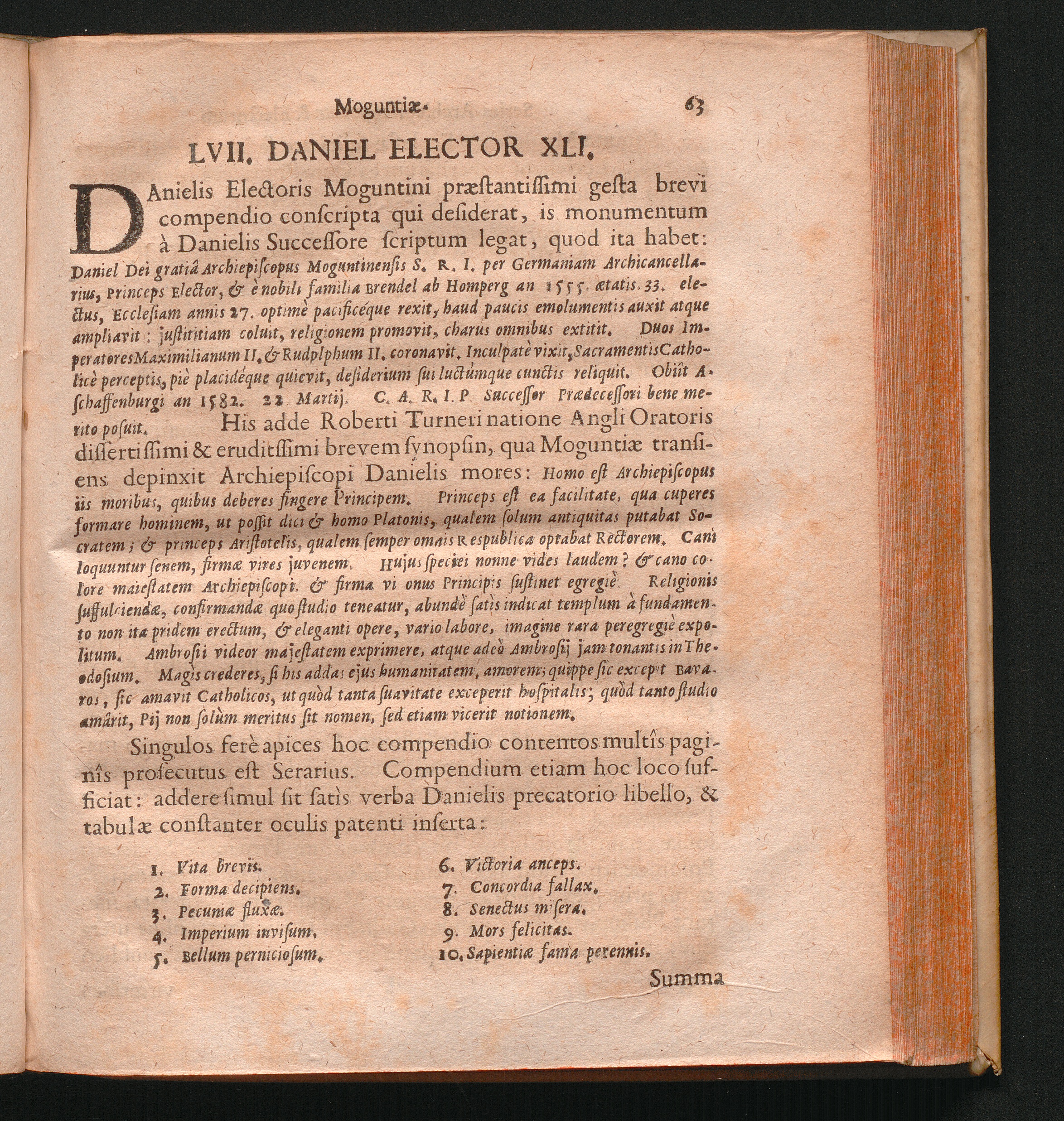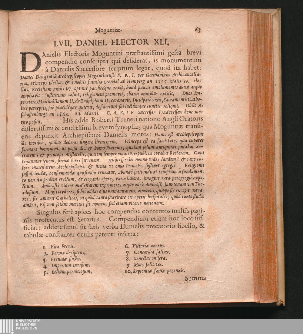 Series Episcoporum Archiepiscoporum Et Electorum Moguntinorum, Trevirensium Et Coloniensium : Unà cum Reflexionibvs Historicis Contra Ioannem Hübnerum & alios Scriptores Heterodoxos &c. Sub Auspicio & Patrocinio ... Domini Domini Casimiri Antonii Liberi Baronis à Sickingen ... / ... In Lucem Edidit MDCCXXV. P. Gregorius Kolb S.J. Historiae quondam Prof. Ordinarius
