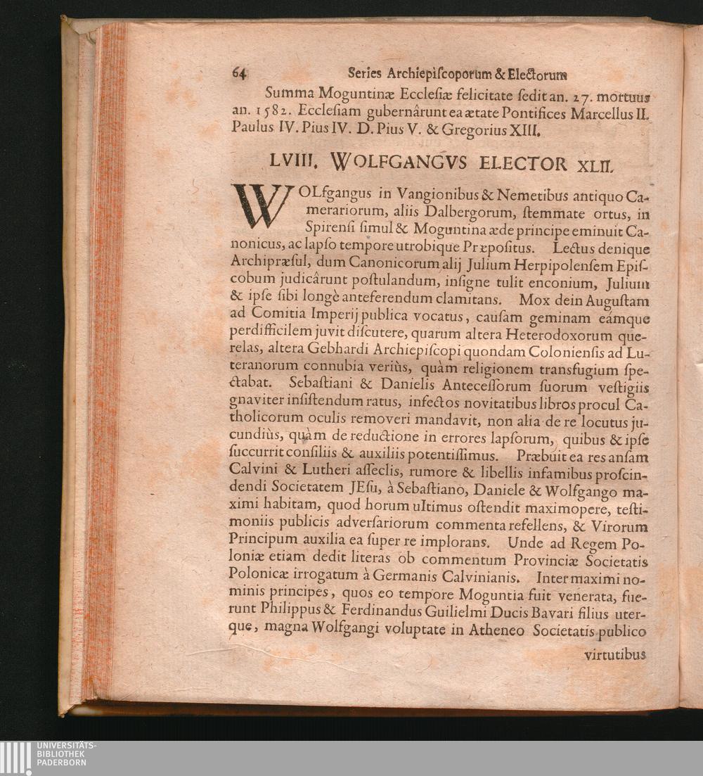Series Episcoporum Archiepiscoporum Et Electorum Moguntinorum, Trevirensium Et Coloniensium : Unà cum Reflexionibvs Historicis Contra Ioannem Hübnerum & alios Scriptores Heterodoxos &c. Sub Auspicio & Patrocinio ... Domini Domini Casimiri Antonii Liberi Baronis à Sickingen ... / ... In Lucem Edidit MDCCXXV. P. Gregorius Kolb S.J. Historiae quondam Prof. Ordinarius
