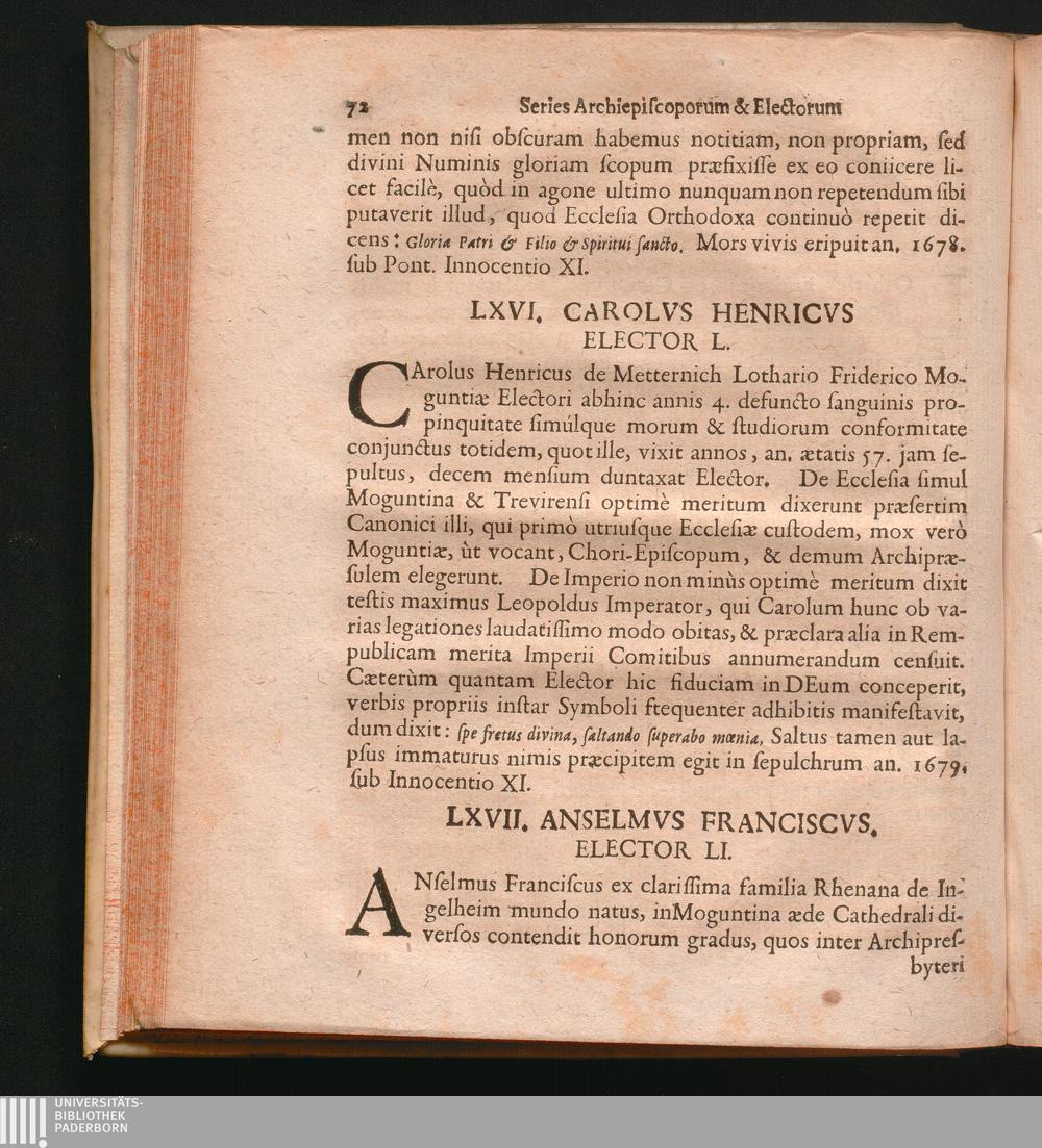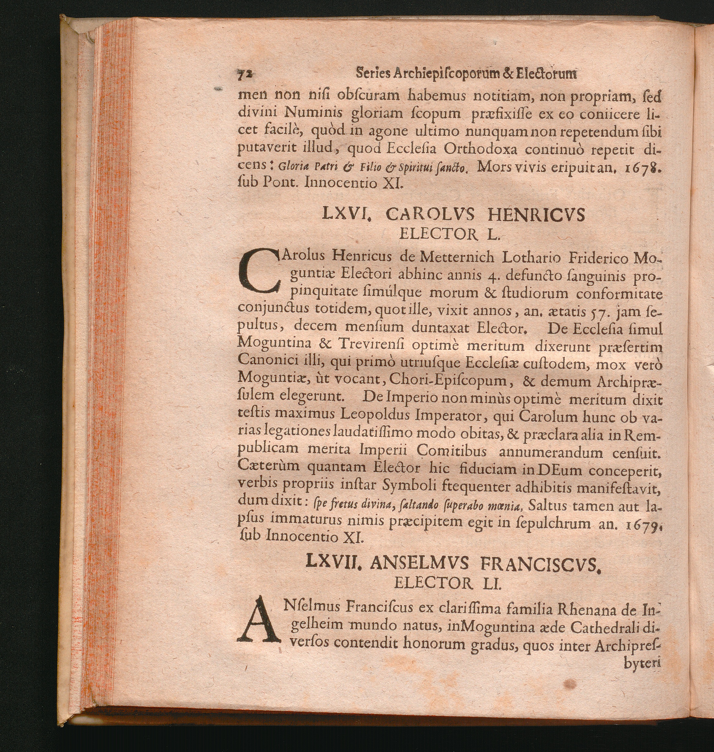 Series Episcoporum Archiepiscoporum Et Electorum Moguntinorum, Trevirensium Et Coloniensium : Unà cum Reflexionibvs Historicis Contra Ioannem Hübnerum & alios Scriptores Heterodoxos &c. Sub Auspicio & Patrocinio ... Domini Domini Casimiri Antonii Liberi Baronis à Sickingen ... / ... In Lucem Edidit MDCCXXV. P. Gregorius Kolb S.J. Historiae quondam Prof. Ordinarius