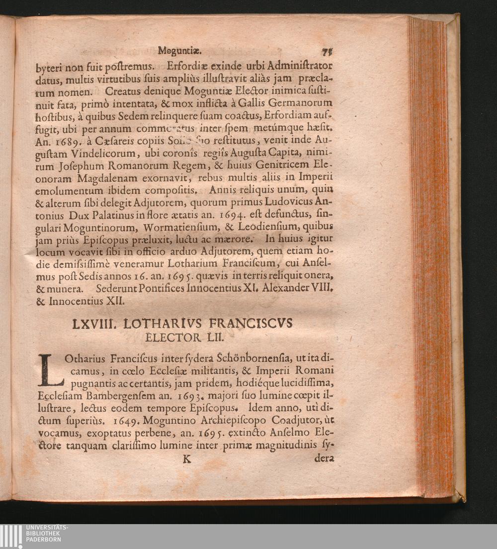 Series Episcoporum Archiepiscoporum Et Electorum Moguntinorum, Trevirensium Et Coloniensium : Unà cum Reflexionibvs Historicis Contra Ioannem Hübnerum & alios Scriptores Heterodoxos &c. Sub Auspicio & Patrocinio ... Domini Domini Casimiri Antonii Liberi Baronis à Sickingen ... / ... In Lucem Edidit MDCCXXV. P. Gregorius Kolb S.J. Historiae quondam Prof. Ordinarius