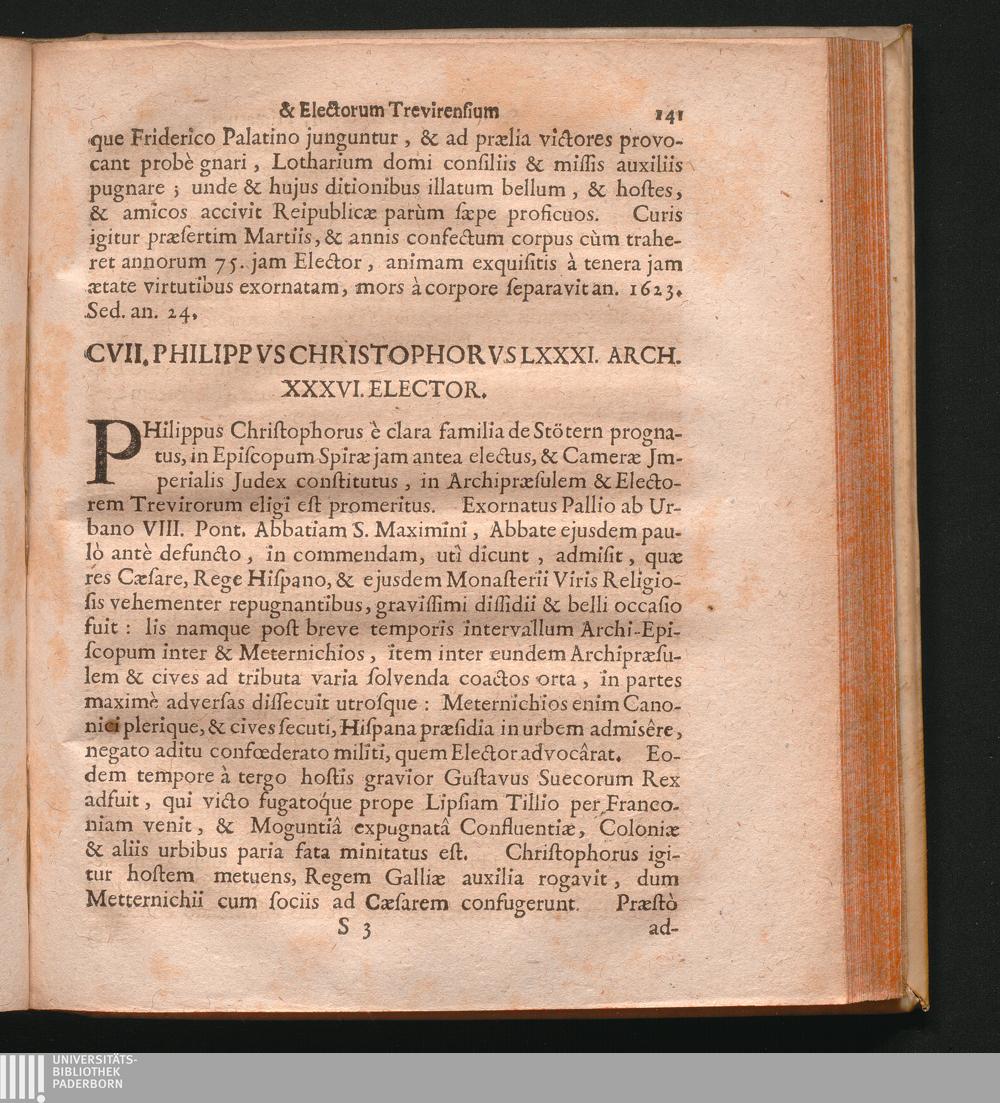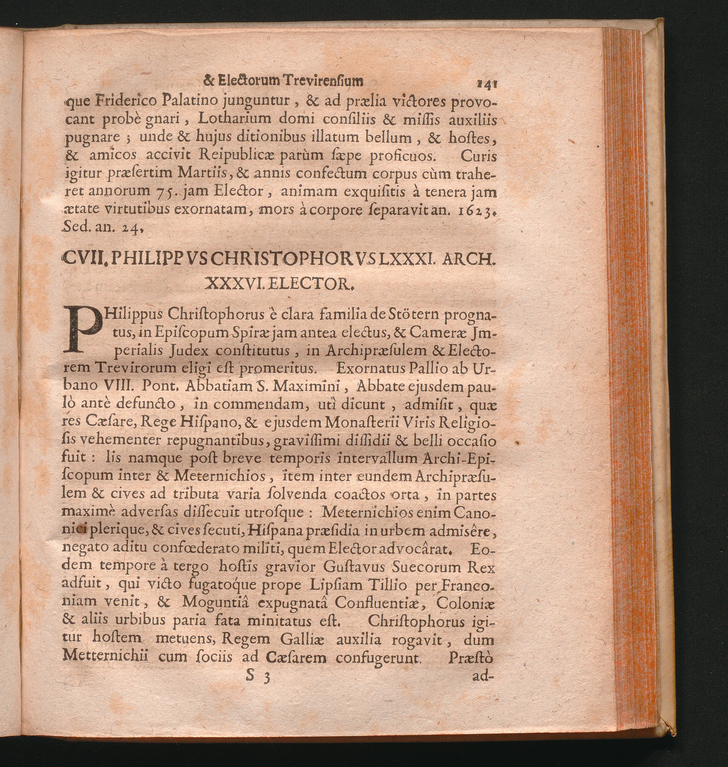 Series Episcoporum Archiepiscoporum Et Electorum Moguntinorum, Trevirensium Et Coloniensium : Unà cum Reflexionibvs Historicis Contra Ioannem Hübnerum & alios Scriptores Heterodoxos &c. Sub Auspicio & Patrocinio ... Domini Domini Casimiri Antonii Liberi Baronis à Sickingen ... / ... In Lucem Edidit MDCCXXV. P. Gregorius Kolb S.J. Historiae quondam Prof. Ordinarius