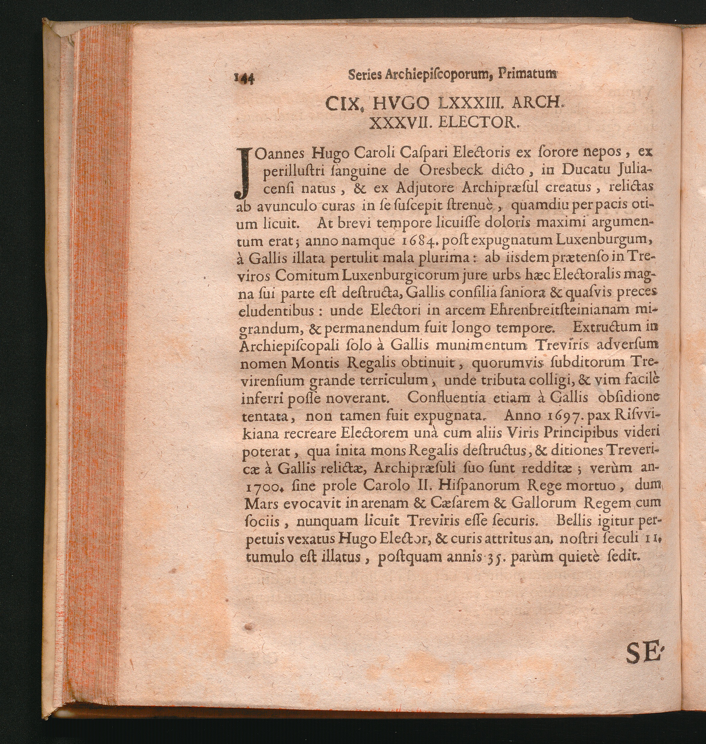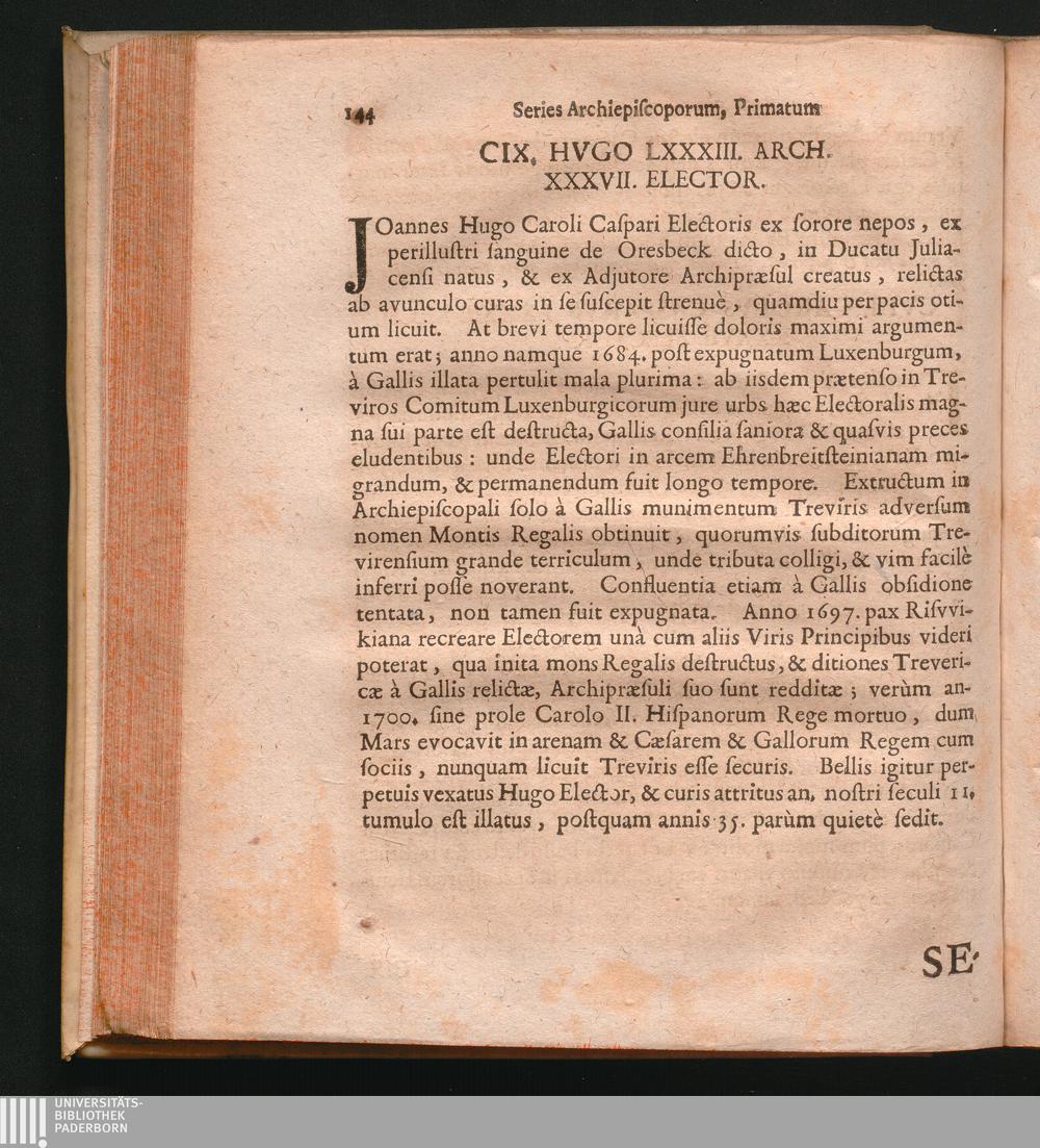 Series Episcoporum Archiepiscoporum Et Electorum Moguntinorum, Trevirensium Et Coloniensium : Unà cum Reflexionibvs Historicis Contra Ioannem Hübnerum & alios Scriptores Heterodoxos &c. Sub Auspicio & Patrocinio ... Domini Domini Casimiri Antonii Liberi Baronis à Sickingen ... / ... In Lucem Edidit MDCCXXV. P. Gregorius Kolb S.J. Historiae quondam Prof. Ordinarius