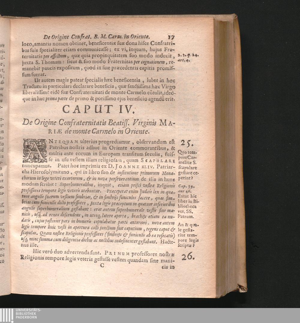Clavis Aurea Thesauri Partheno-Carmelitici, Sive Dissertatio Historico-Theologica, Referans atque Exponens Antiquitatem & originem, confirmationem ac propagationem, beneficia ac privilegia, gratias & indulgentias, munera & obligatione celeberrimae Confraternitatis Scapularis Mariani Dei parae Virginis de monte Carmelo : Per Quam Etiam ... Theologorumq[ue] selectiores opiniones ... declaratur / Authore R.P. Paulo Ab Omnibus Sanctis, Carmelita Excalceato, Provinciae Germaniae Definitore