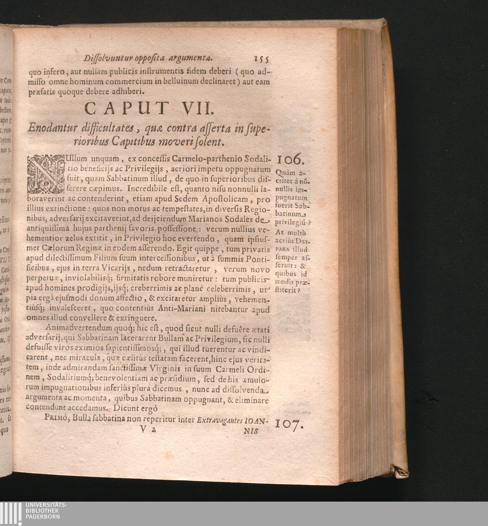 Clavis Aurea Thesauri Partheno-Carmelitici, Sive Dissertatio Historico-Theologica, Referans atque Exponens Antiquitatem & originem, confirmationem ac propagationem, beneficia ac privilegia, gratias & indulgentias, munera & obligatione celeberrimae Confraternitatis Scapularis Mariani Dei parae Virginis de monte Carmelo : Per Quam Etiam ... Theologorumq[ue] selectiores opiniones ... declaratur / Authore R.P. Paulo Ab Omnibus Sanctis, Carmelita Excalceato, Provinciae Germaniae Definitore
