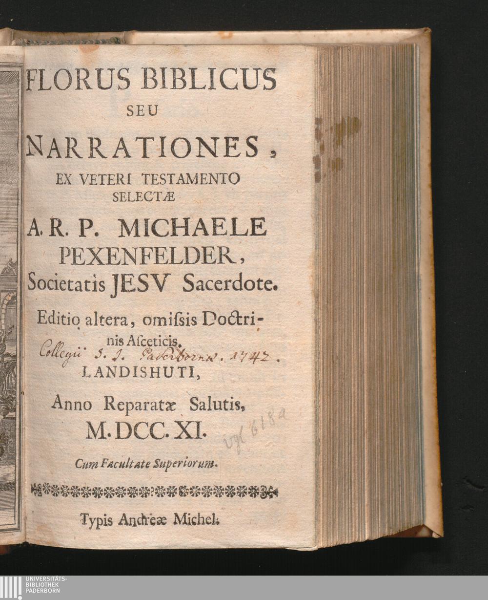 Florus Biblicus Seu Narrationes, Ex Veteri Testamento Selectæ / A. R. P. Michaele Pexenfelder, Societatis Jesv Sacerdote