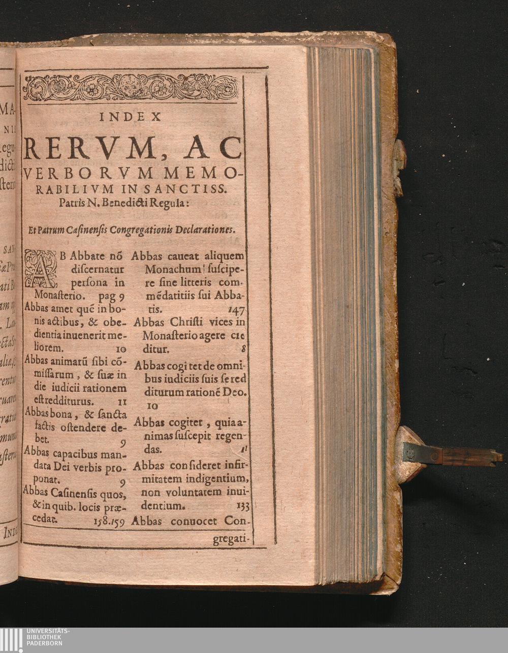 Index Rervm, Ac Verborvm Memorabilivm In Sanctiss. Patris N. Benedicti Regula:
