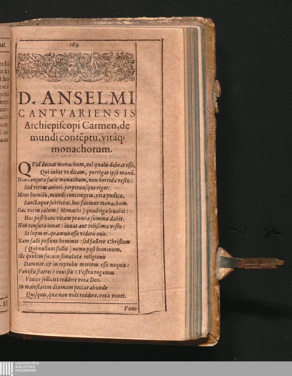 D. Anselmi Cantvariensis Archiepiscopi Carmen, de mundi conte[m]ptu, vitáq[ue] m[...]