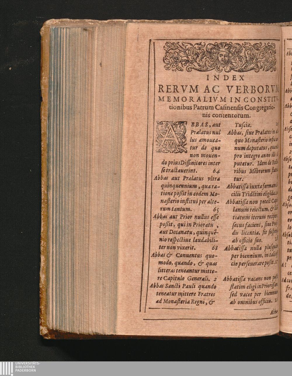 Index Rervm Ac Verborvm Memoralivm In Constitvtionibus Patrum Casinensis Congregationis[...]