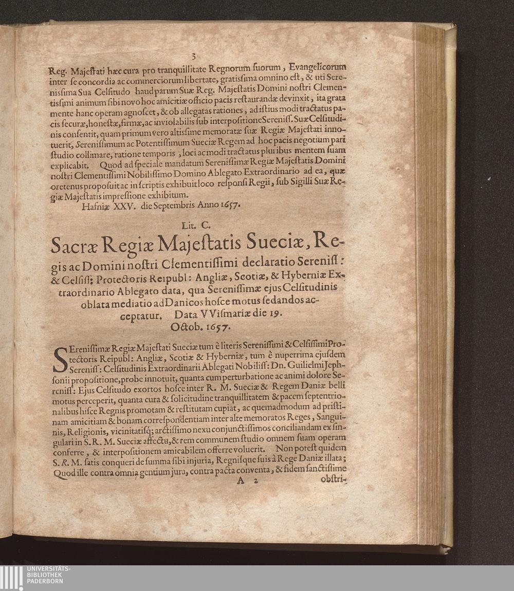 Lit. C. Sacrae Regiae Majestatis Sueciae, Regis ac Domini nostri Clementissimi declaratio[...]