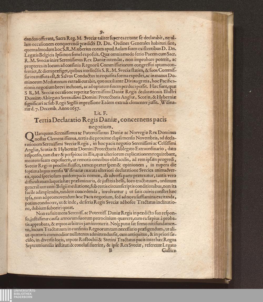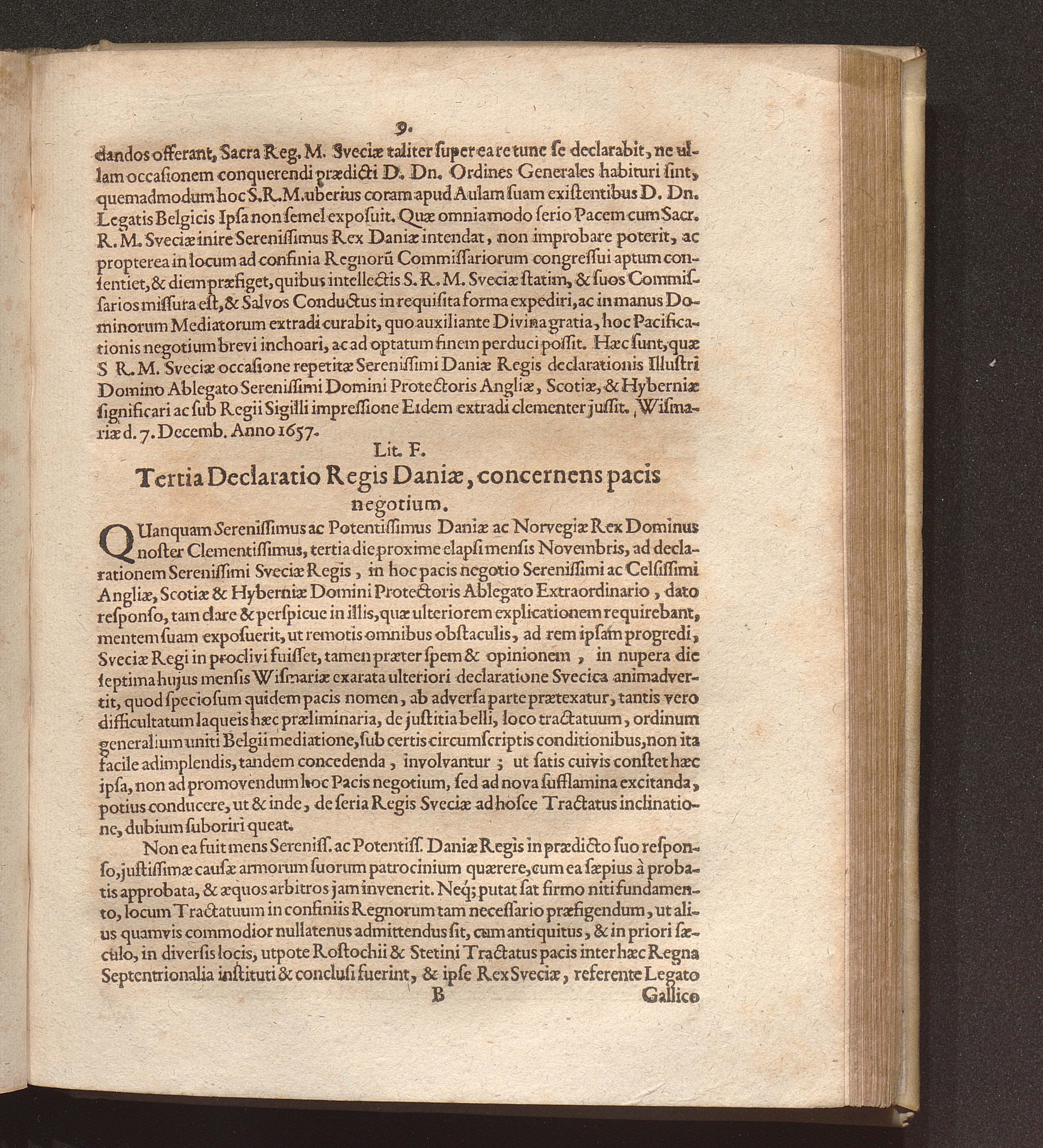 Lit. F. Tertia Declaratio Regis Daniae, concernens pacis negotium.