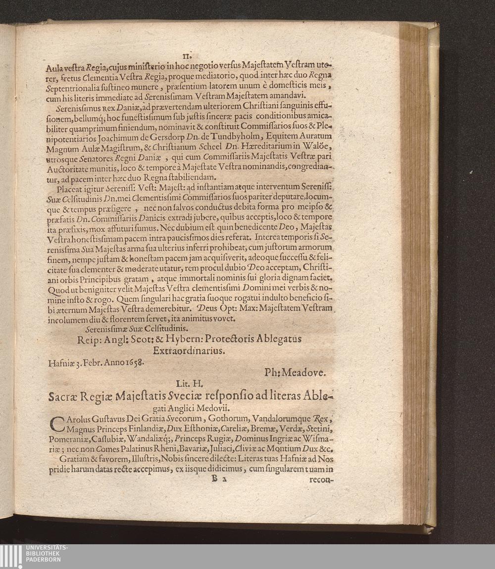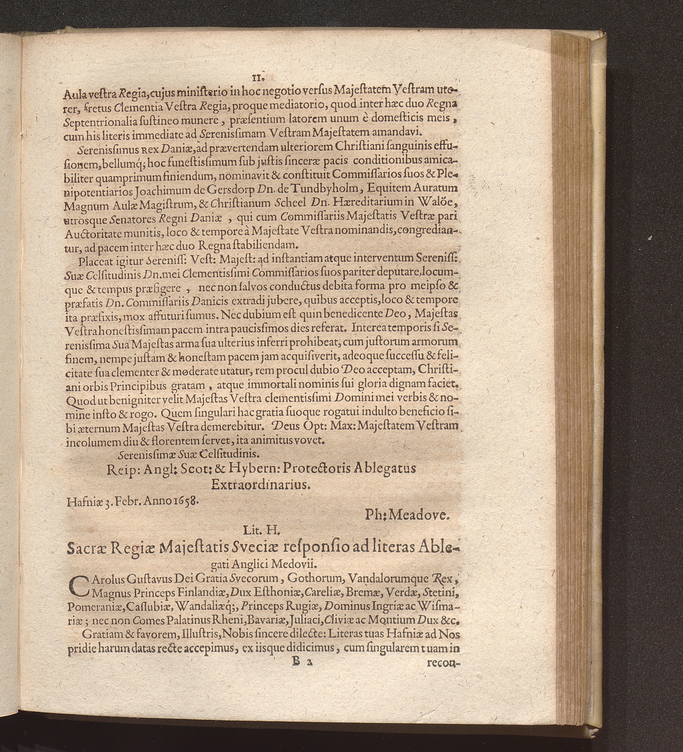 Lit. H. Sacrae Regiae Majestatis Sveciae responsio ad literas Ablegati Anglici M[...]
