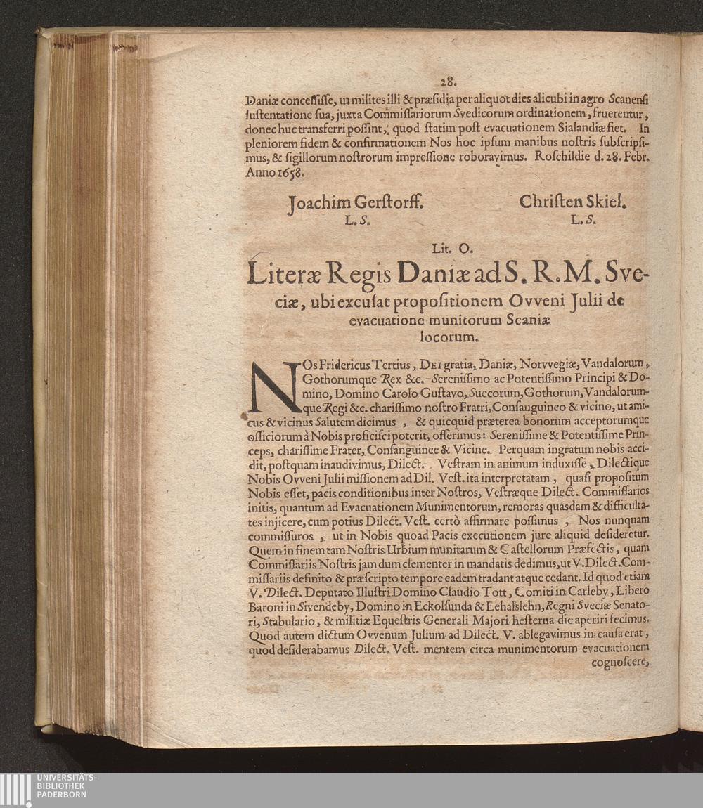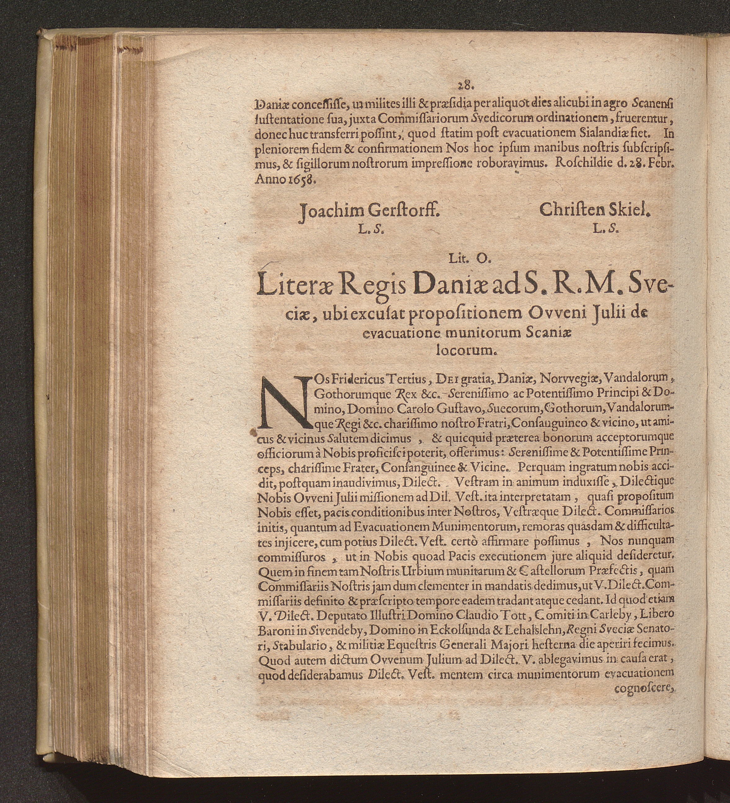 Lit. O. Literae Regis Daniae ad S. R. M. Sveciae, ubi excusat propositionem Ovveni[...]