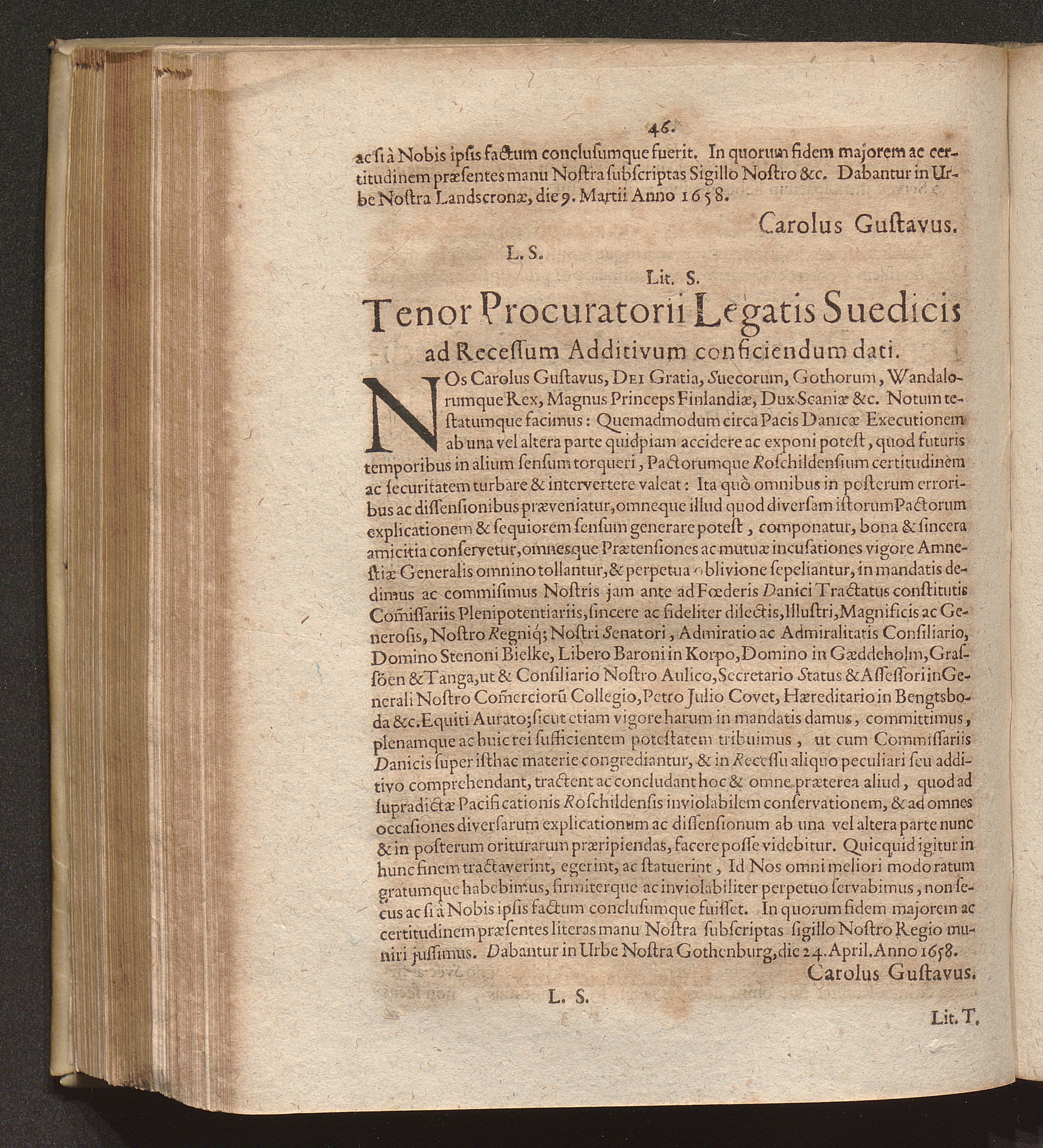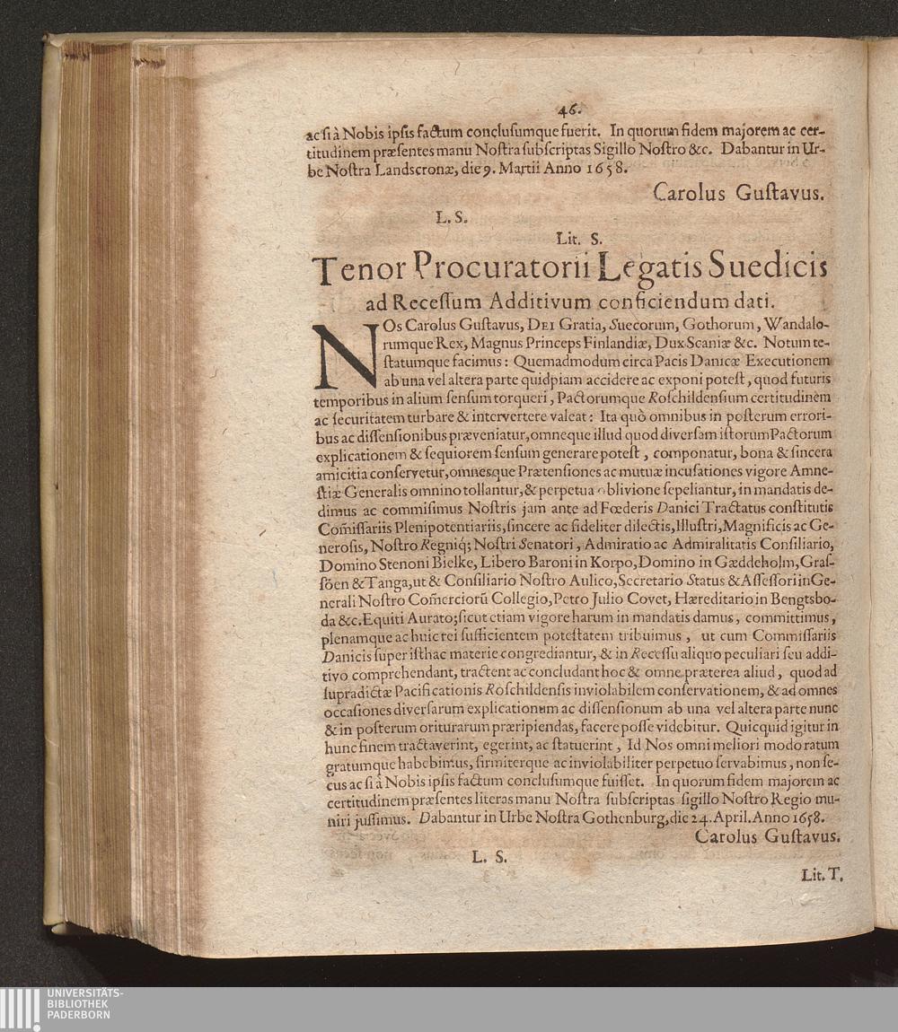 Lit. S. Tenor Procuratorii Legatis Suedicis ad Recessum Additivum conficiendum d[...]