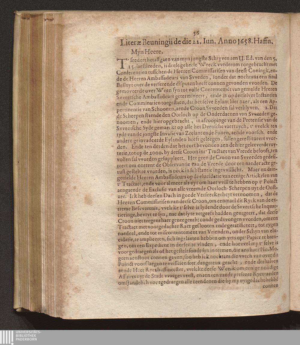 Literae Beuningii de die 22. Iun. Anno 1658. Haffn.