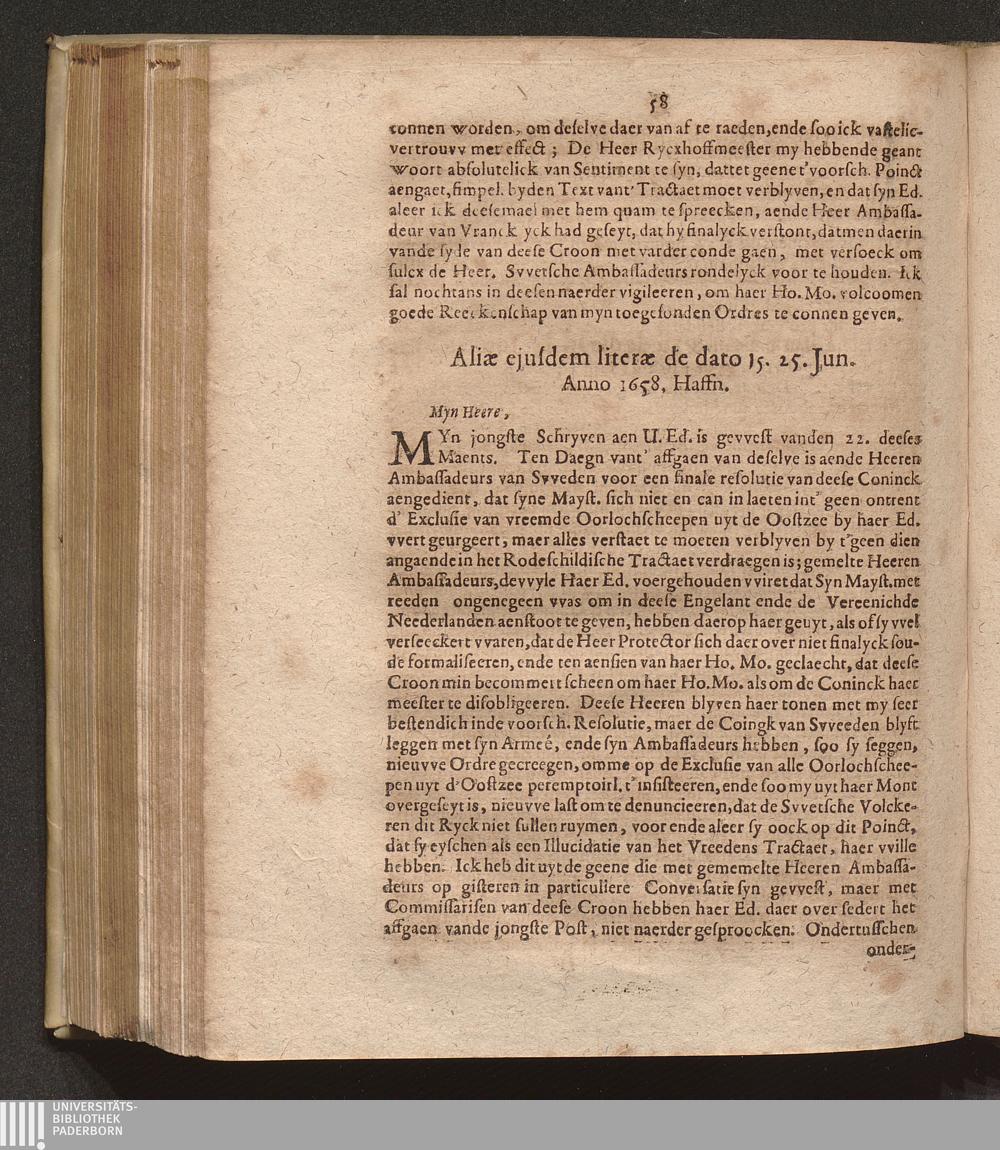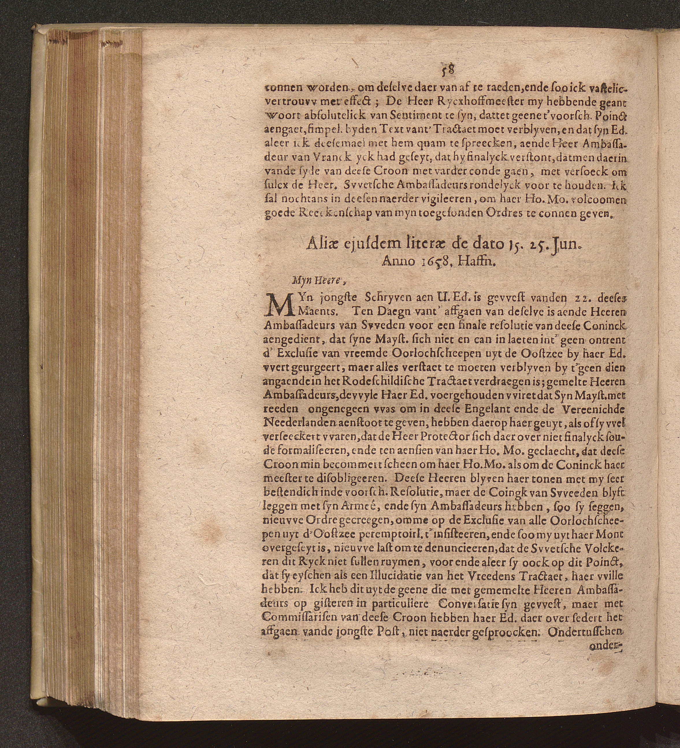 Aliae ejusdem literae de dato 15. 25. Jun. Anno 1658. Haffn.