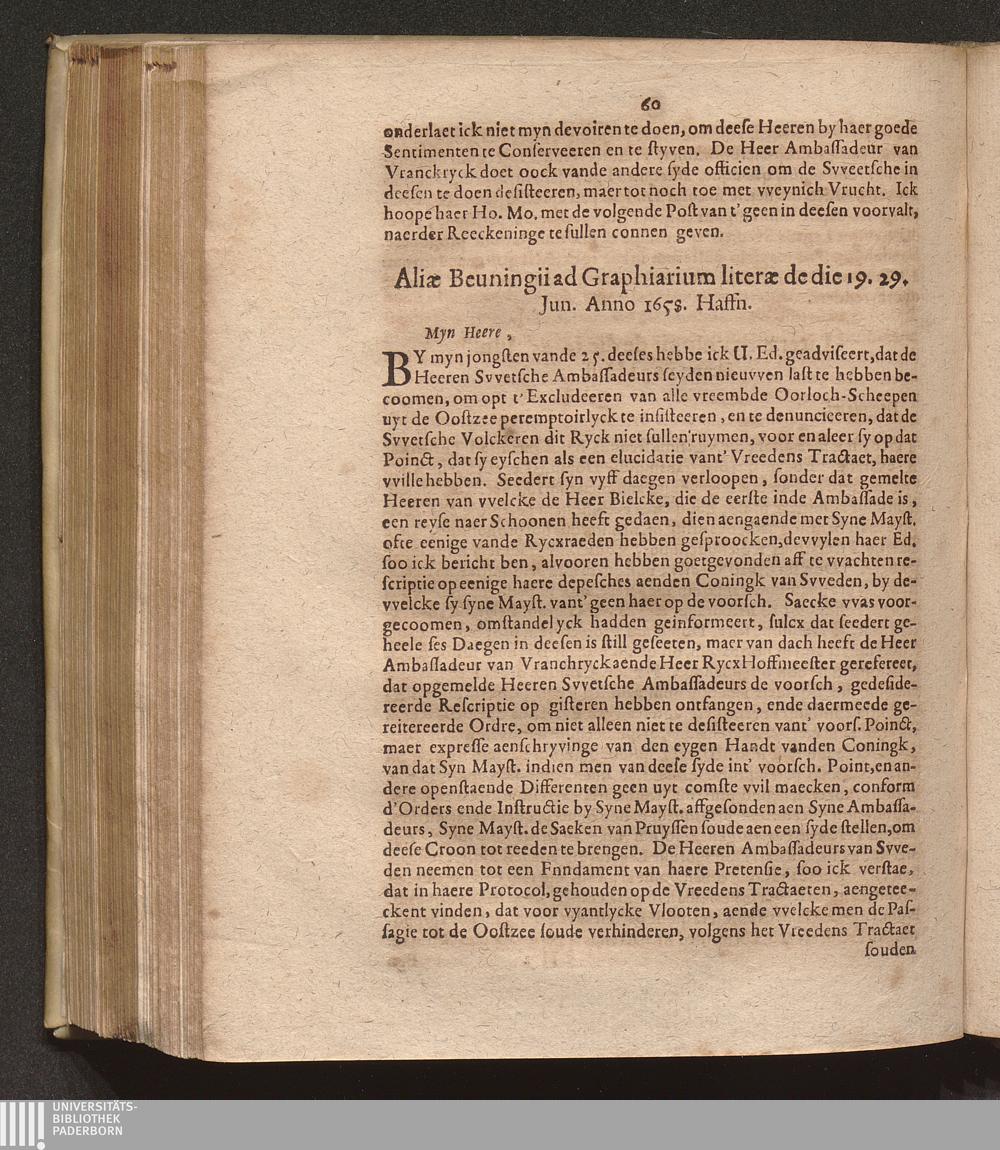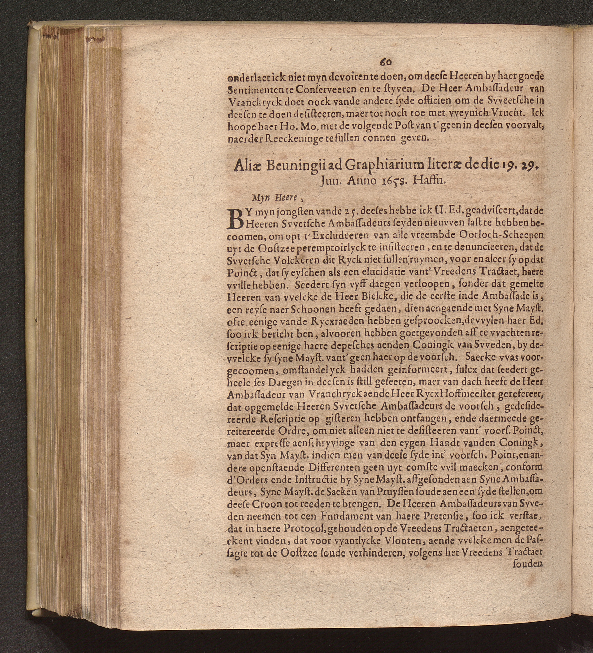 Aliae Beuningii ad Graphiarium literae de die 19. 29. Jun. Anno 1658. Haffn.