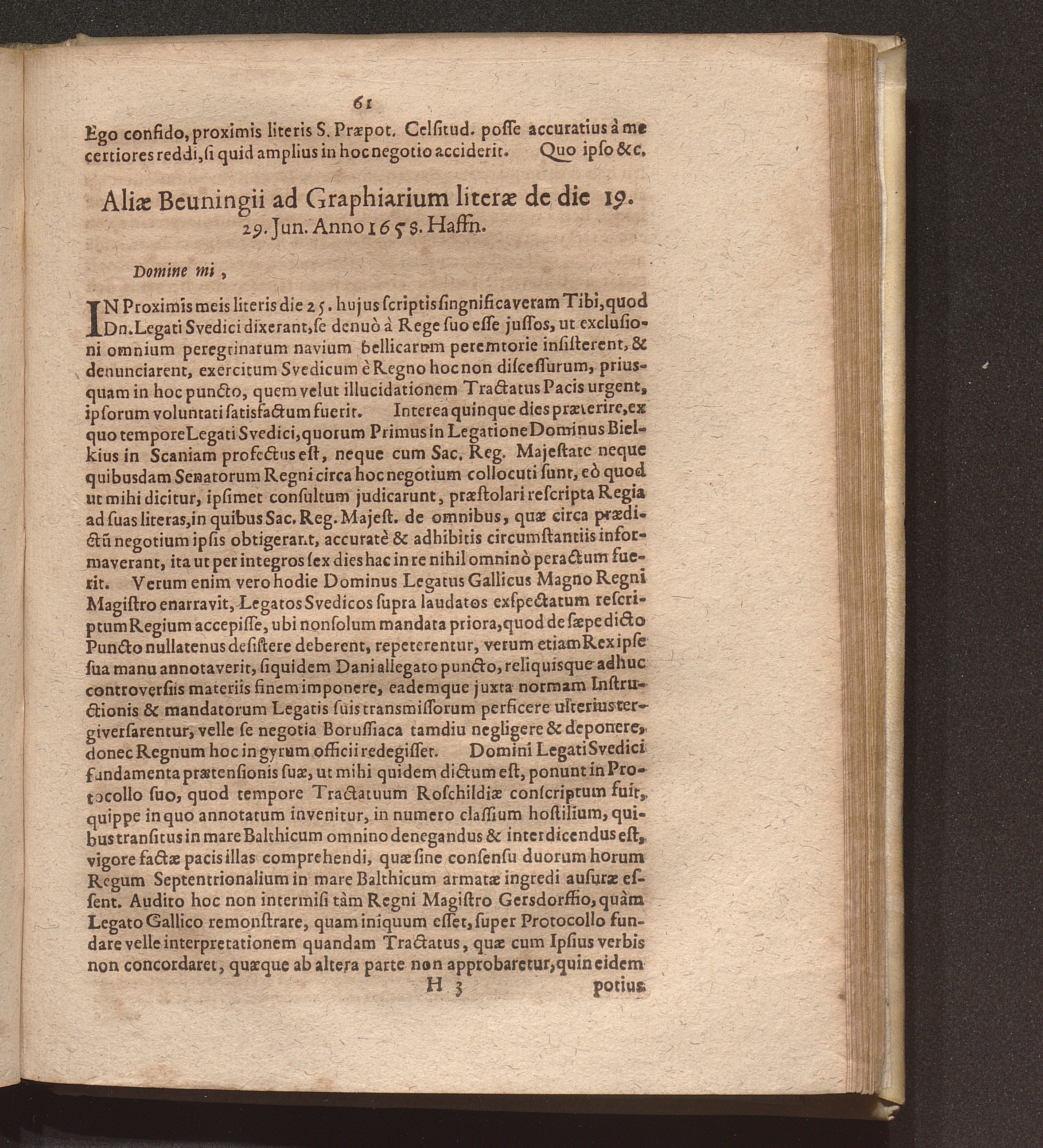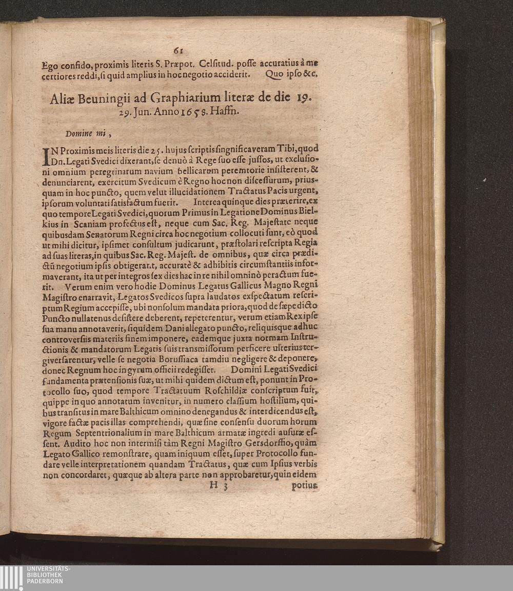 Aliae Beuningii ad Graphiarium literae de die 19. 29. Jun. Anno 1658. Haffn.