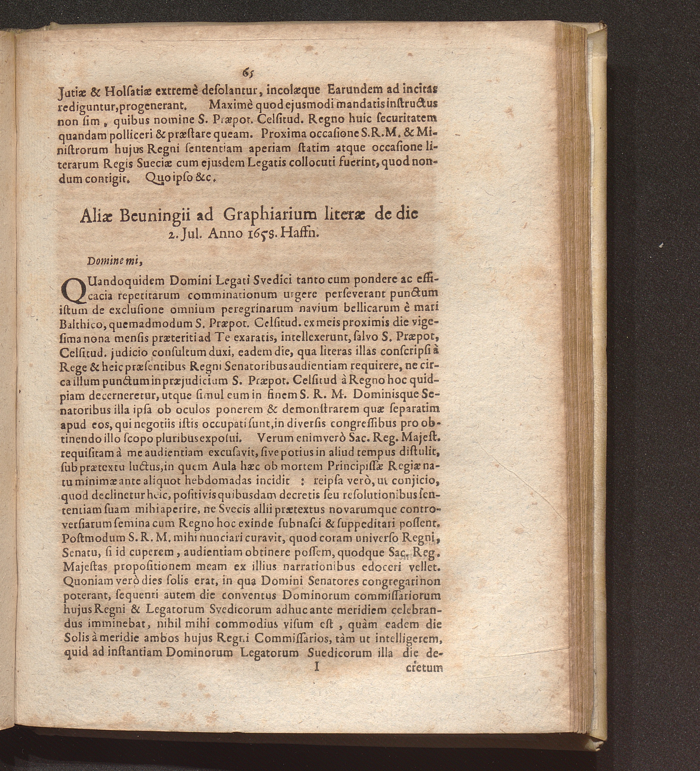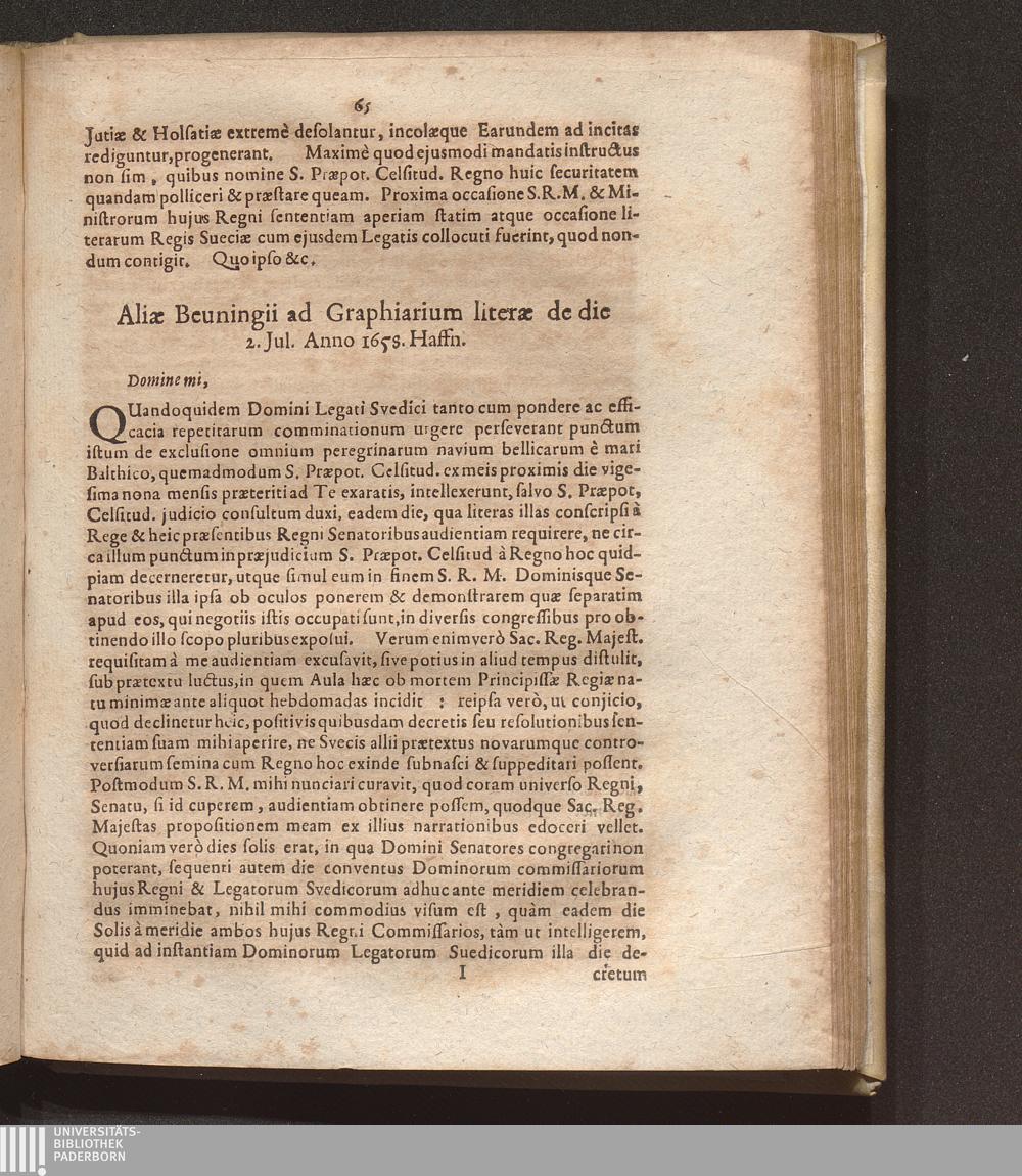 Aliae Beuningii ad Graphiarium literae de die 2. Jul. Anno 1658. Haffn.