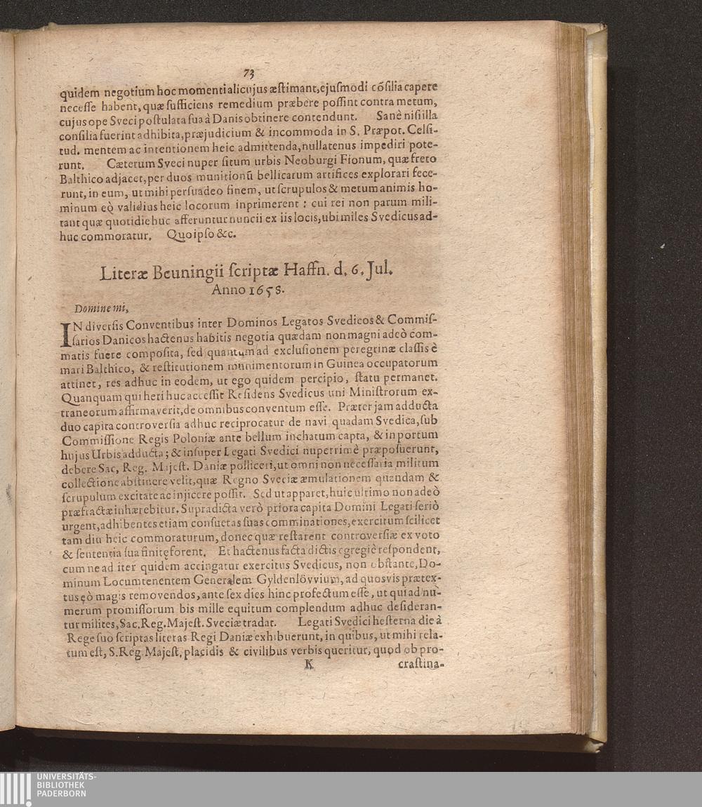 Literae Beuningii scriptae Haffn. d. 6. Jul. Anno 1658.