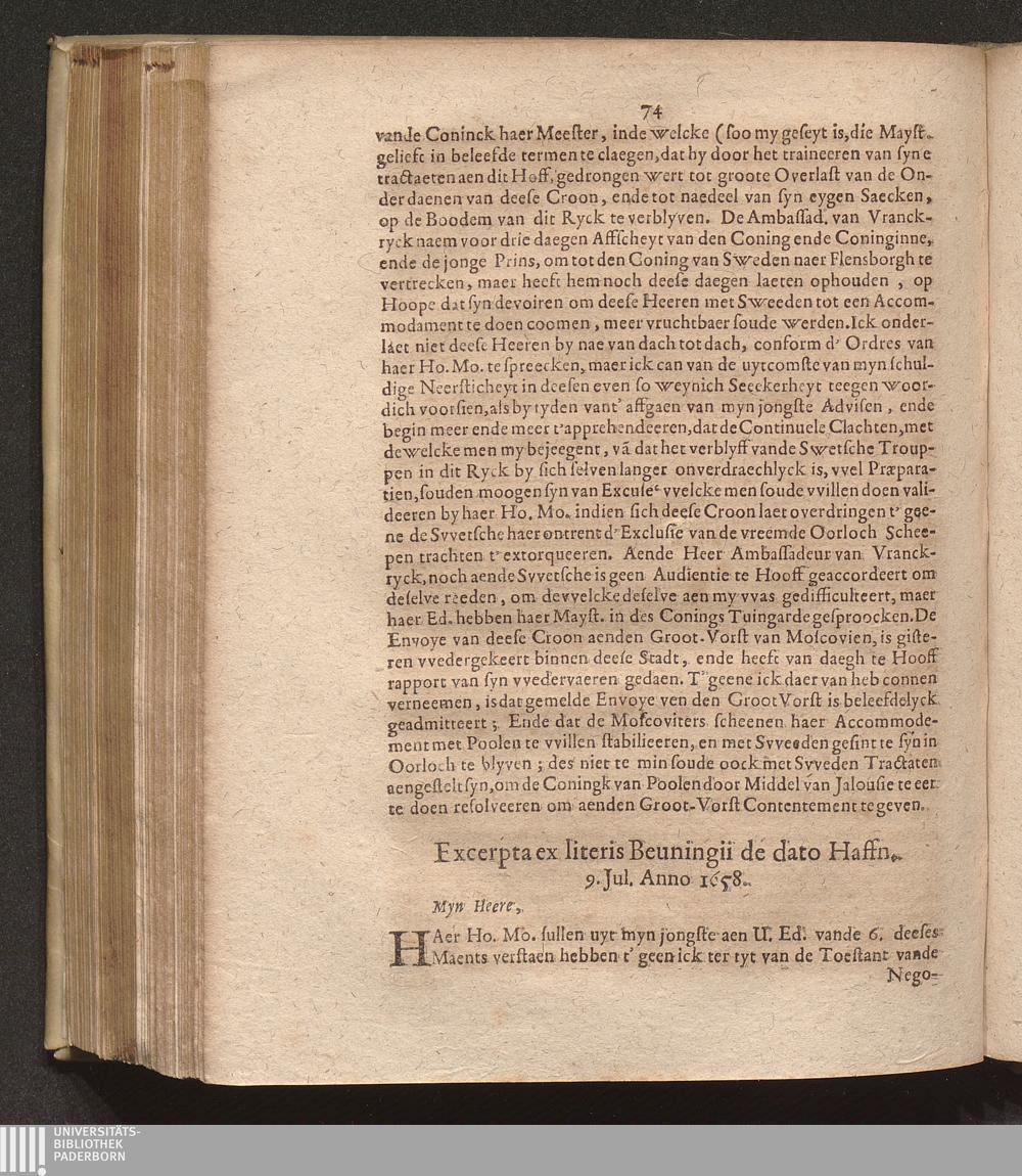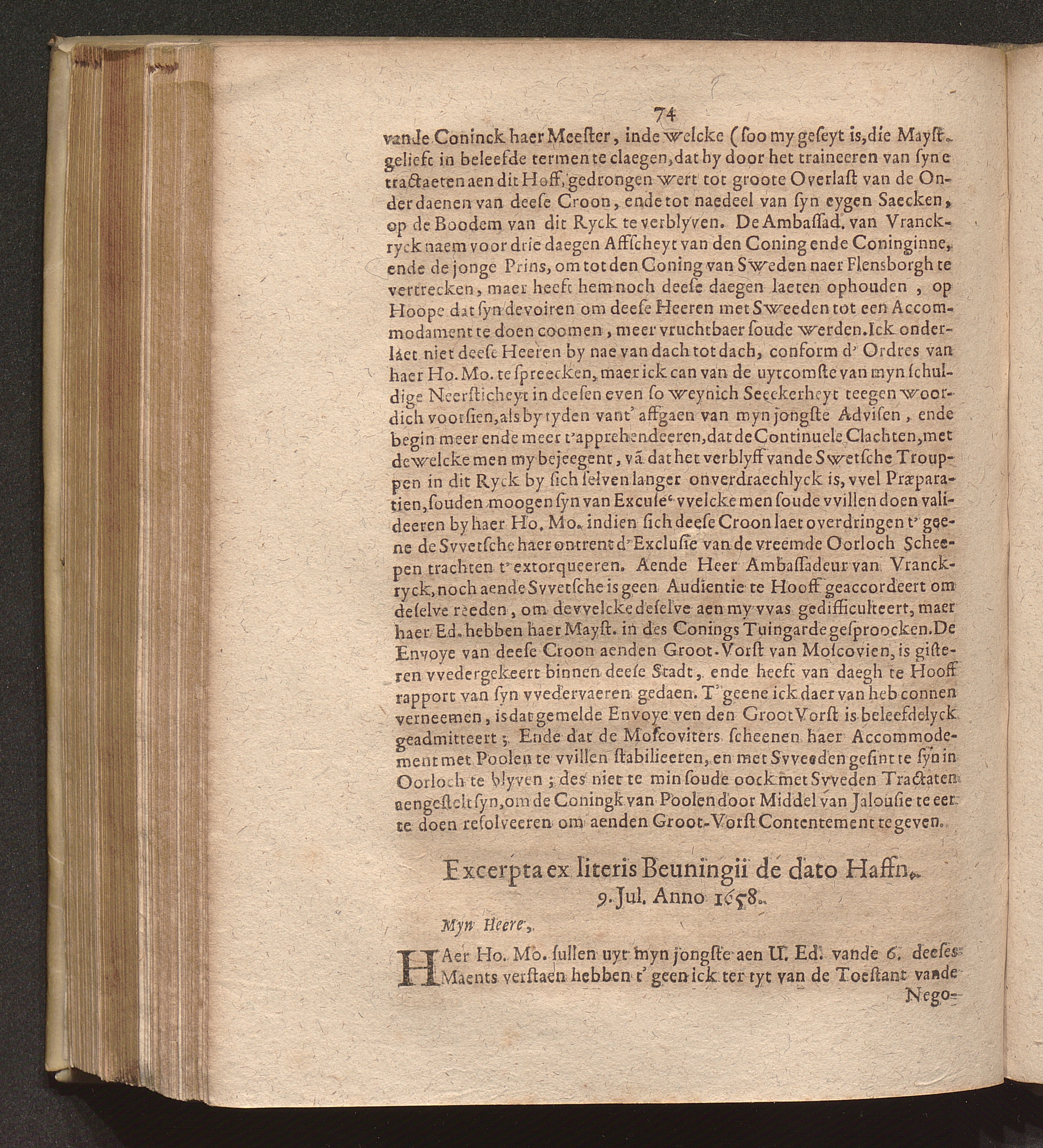 Excerpta ex literis Beuningii de dato Haffn. 9. Jul. Anno 1658.