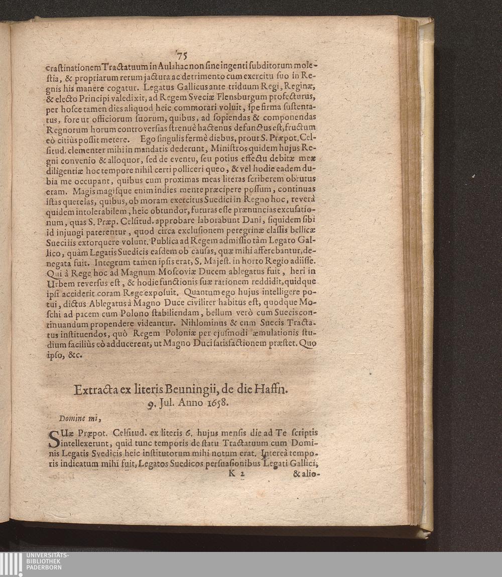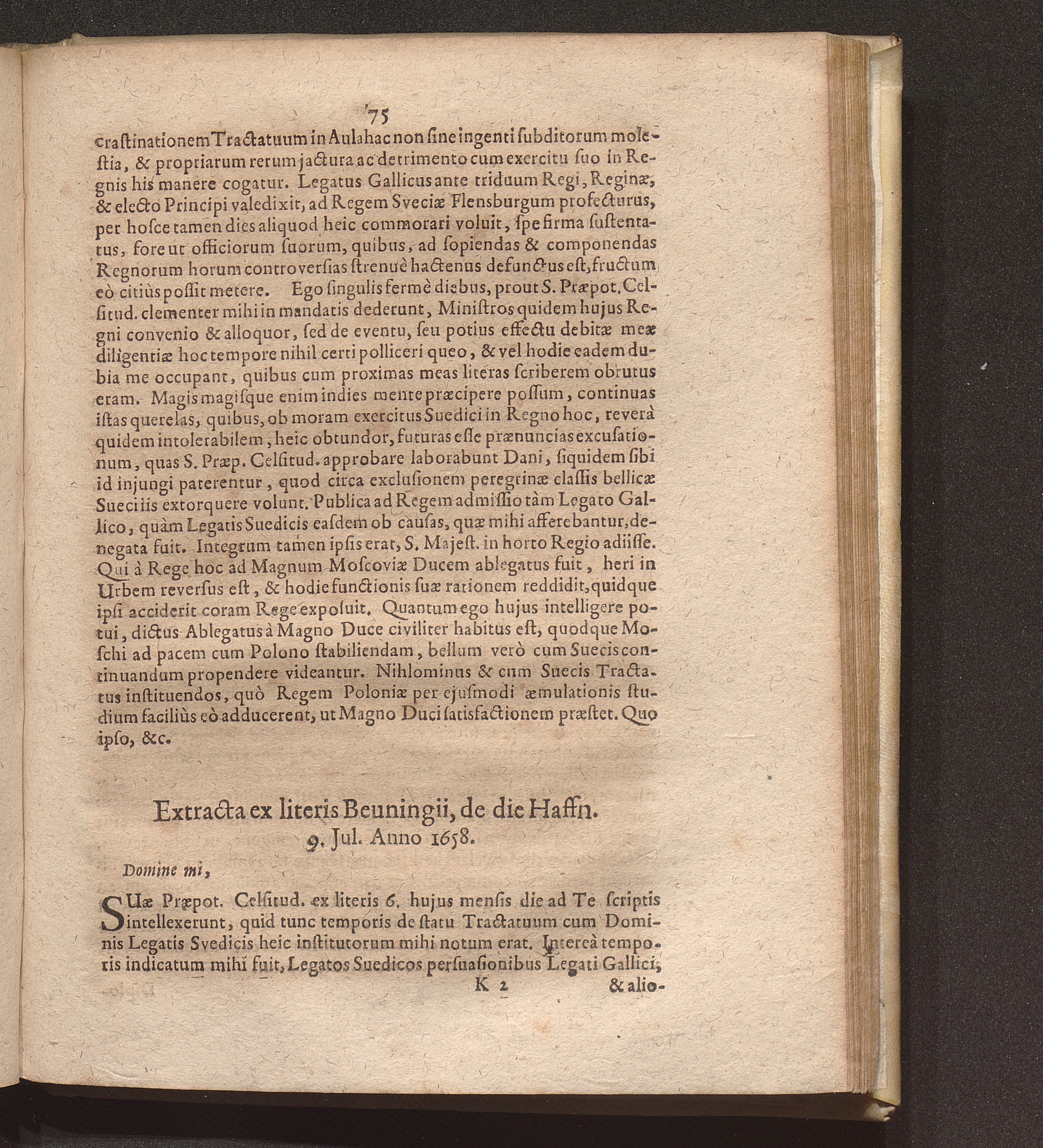 Extracta ex literis Beuninigii, de die Haffn. 9. Jul. Anno 1658.