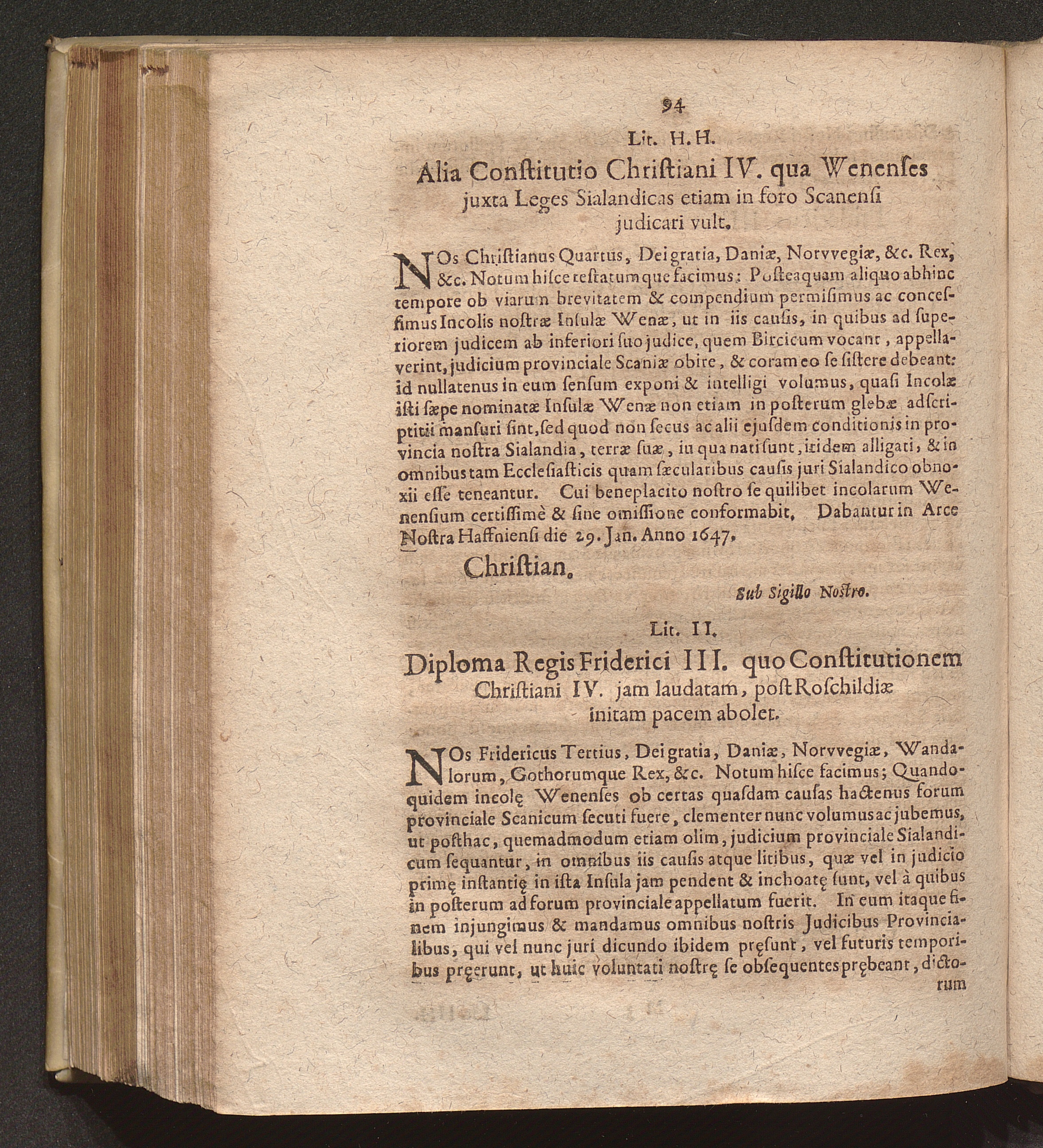 Lit. II. Diploma Regis Friderici III. quo Constitutionem Christiani IV. jam laudatam,[...]